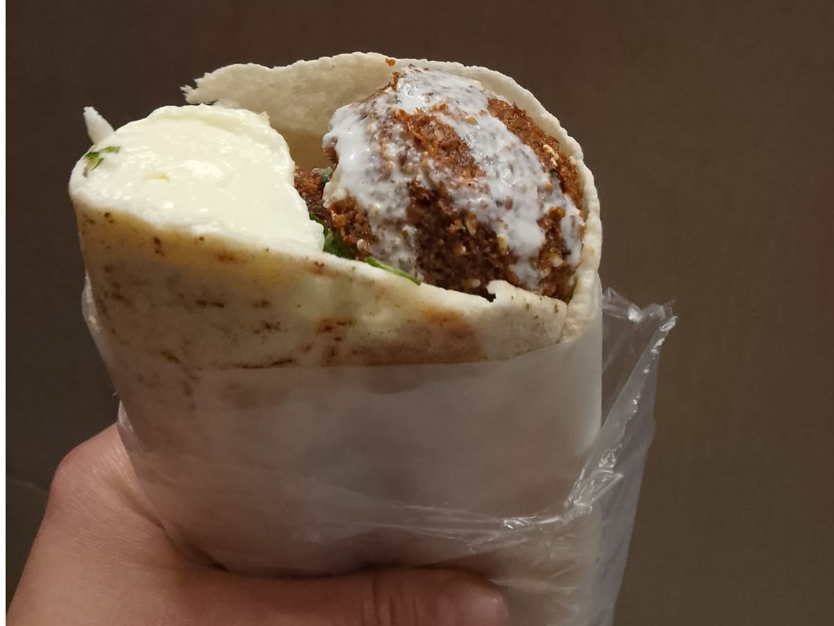 SANDWICHS DE FALAFELPAN CON 4 CROQUETAS DE GARBANZO FRITO, CREMA, LECHUGA, TOMATE Y CEBOLLA Y PEREJIL CON UN POCO DE TARATOR$11.000 Personalizá tu selección Las siguientes opciones aplican para cada producto agregado. CREMAS Seleccioná una opción. Obligatorio AJO CREMA DE AJO, CON TEXTURA SUAVE HUMMUS (GARBANZO) CREMA DE GARGANZOS Y TAHINE, CONDIMENTOS CON ESPECIES ÁRABES MUHAMMARA (MORRÓN ROJO) CREMA DE MORRÓN ROJO Y PAN RALLADO CONDIMENTADO CON ESPECIES ÁRABES. MTABAL (BERENJENA) CREMA DE BERENJENA AHUMADAS CON TAHINE, AJO CONDIMENTOS ARABES Y YOGURT ENSALADAS Seleccioná una opción. Obligatorio LECHUGA, TOMATE, CEBOLLA Y PEREJIL Observaciones 0 / 150