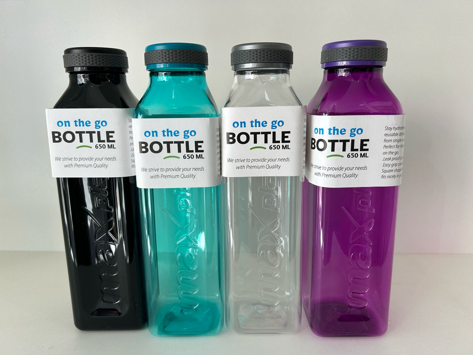 BOTELLA " MAX PLAST" PICO ANCHO ON THE GO BOTTLE - COD.: 1895 Compartir 2 unidades en stock $3.000 Observaciones 0 / 150