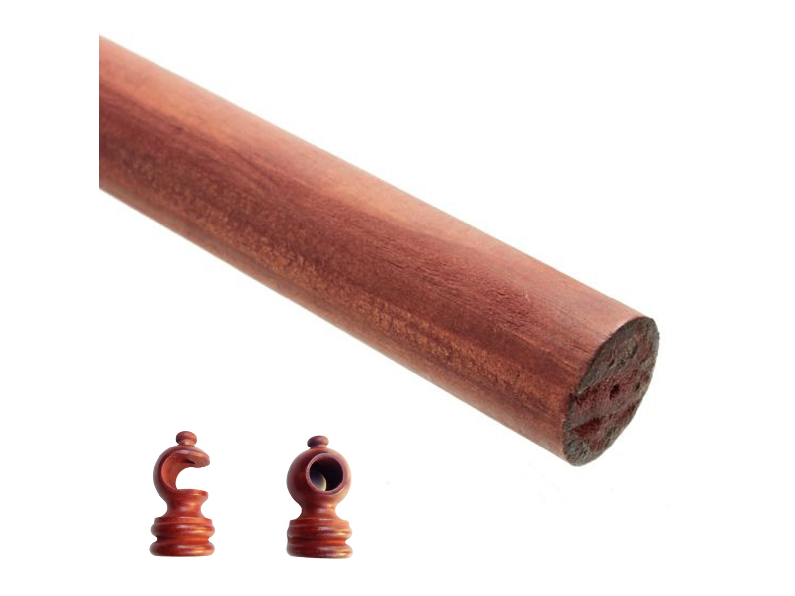 Barral de madera, color cedro, para cortina de ambiente. Además incluye los dos soportes laterales + el soporte central y las punteras decorativas.