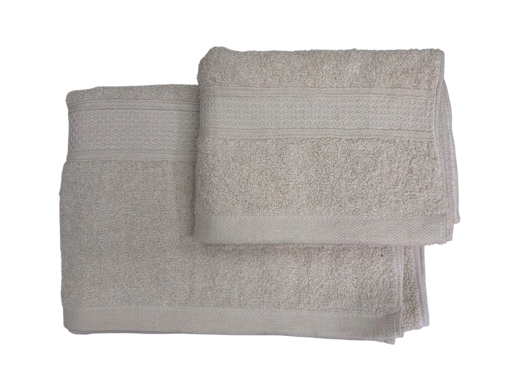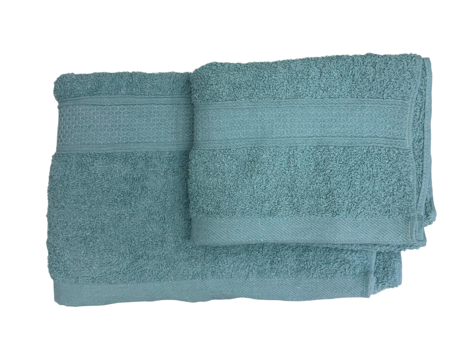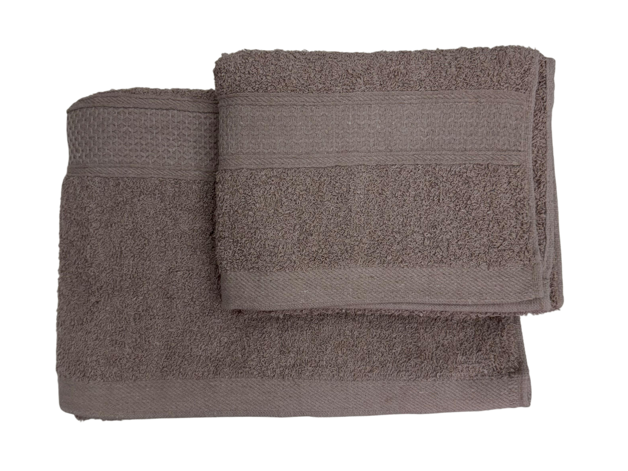 Confeccionados en tela 90% algodón + 10% poliéster, 450gr por metro cuadrado El artículo consta de 1 toallón de 70x140cm + 1 toalla de rostro de 45x70cm.