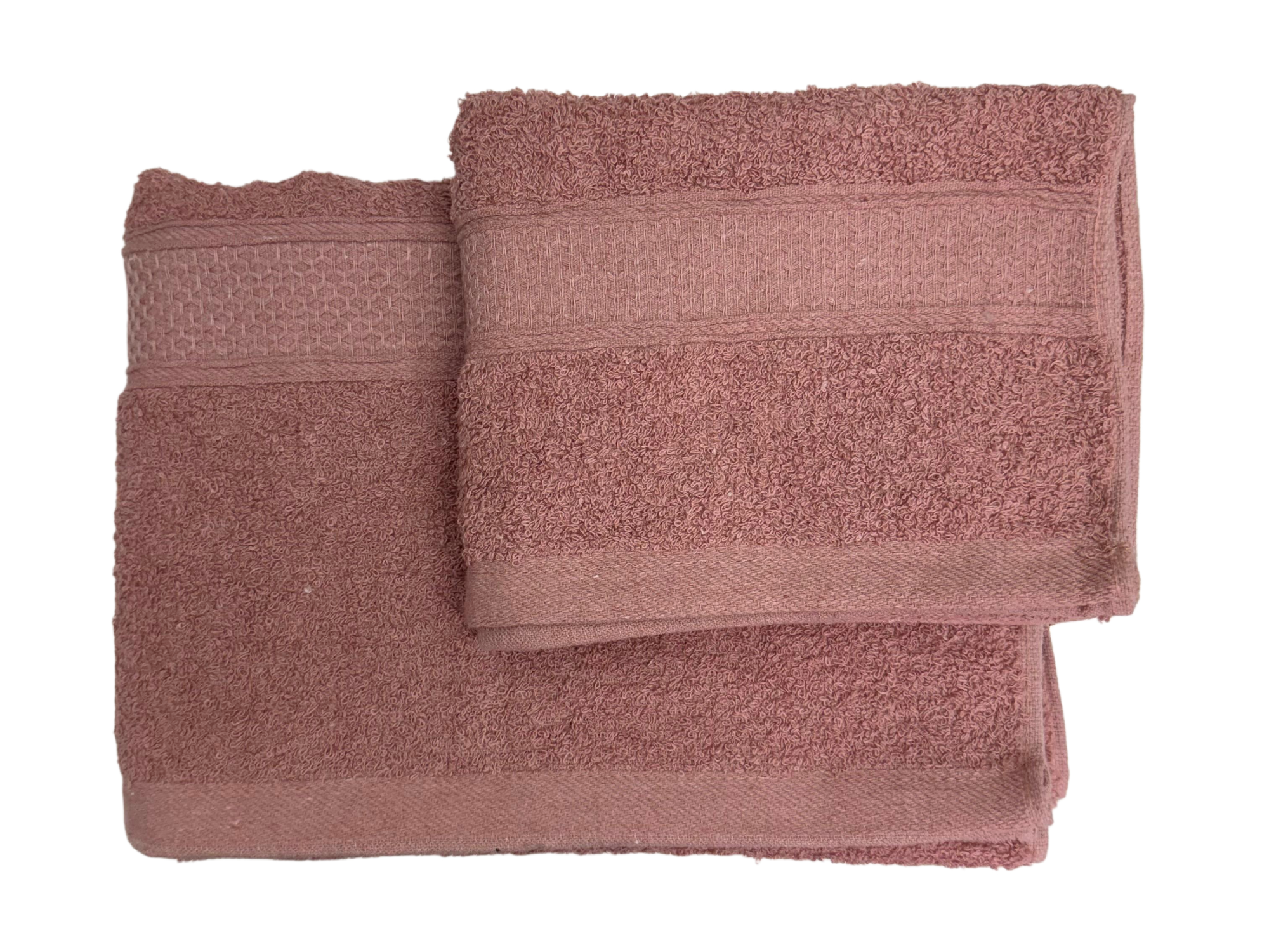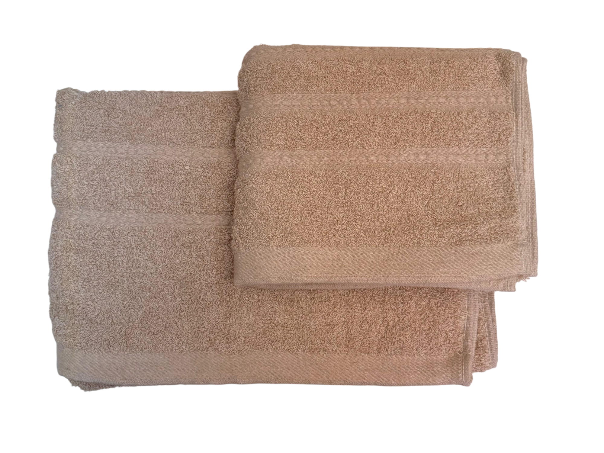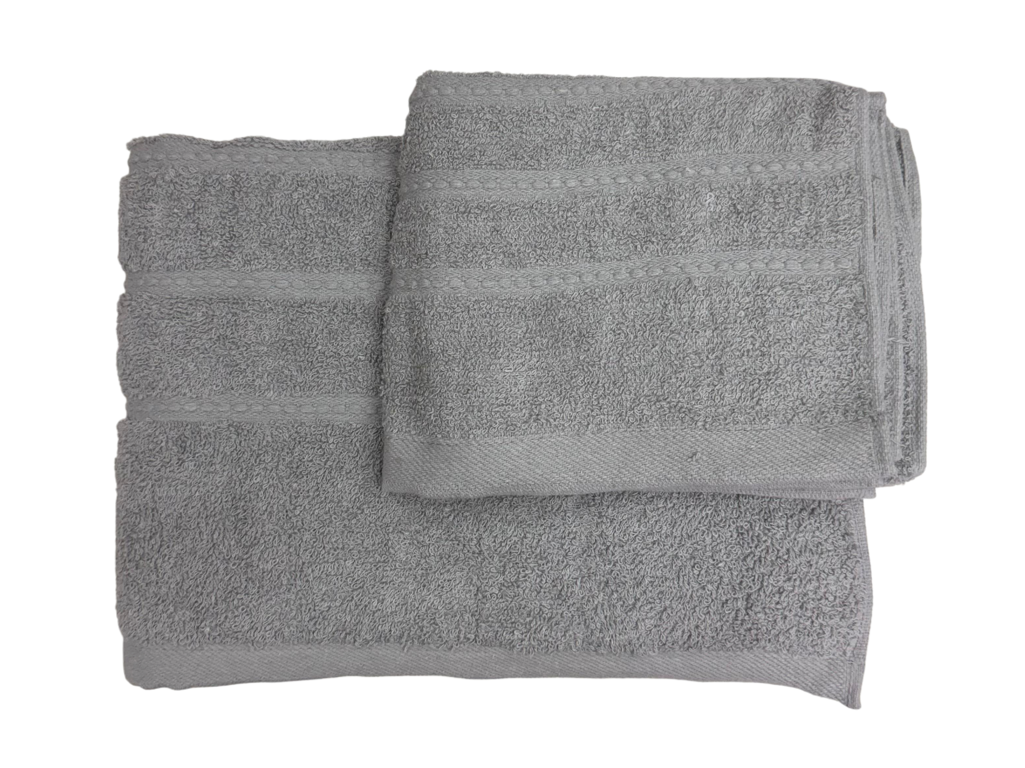 Confeccionados en tela 90% algodón + 10% poliéster, 450gr por metro cuadrado El artículo consta de 1 toallón de 70x140cm + 1 toalla de rostro de 45x70cm.