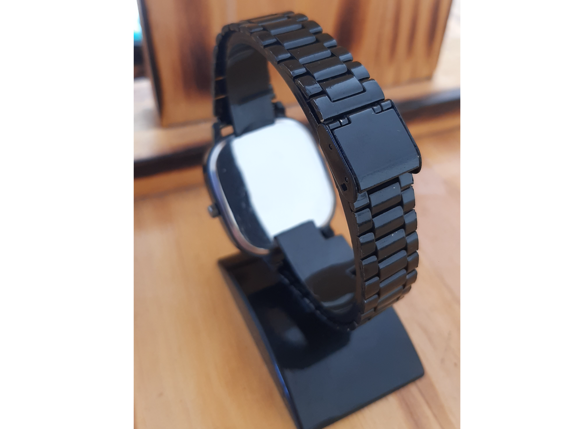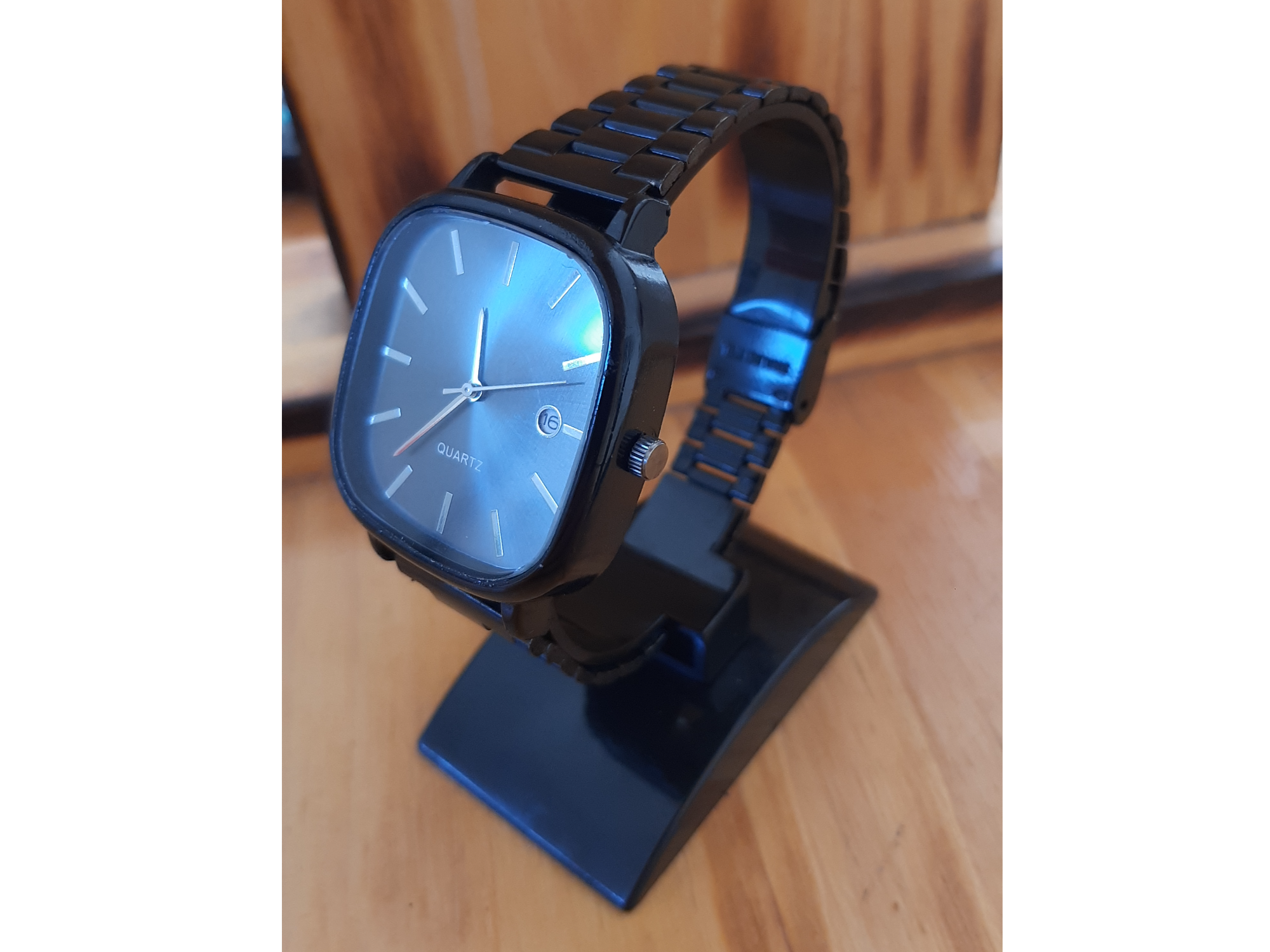 Cuadrado genérico negro Compartir por WhatsApp Copiar enlace Reloj pulsera de color negro, de acero, con malla regulable, calendario funcional y movimiento quartz$20.000 Observaciones 0 / 150