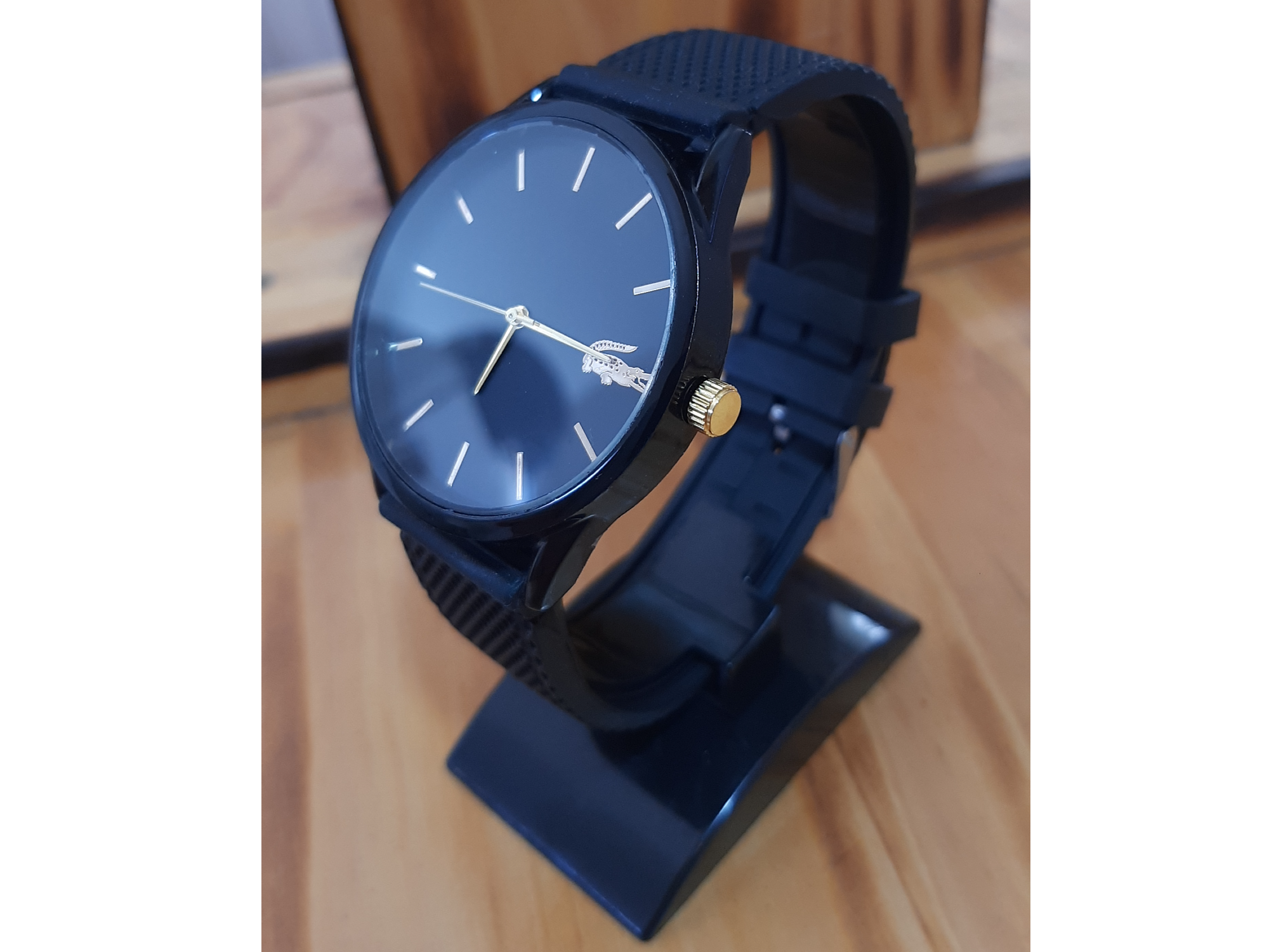 Redondo negro 2 Compartir por WhatsApp Copiar enlace Reloj de pulsera Lacoste alternativo negro con marcadores dorados con malla de silicona regulable por hebilla, con caja de acero inoxidable y movimiento quartz$20.000 Observaciones 0 / 150