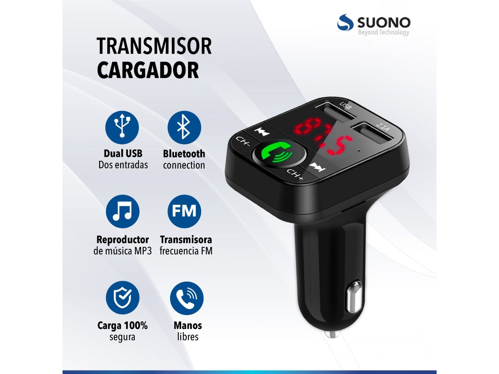 Trasmiti musica por bluetoot, de forma facil. Conecta a la toma de encendedor, sintoniza la radio FM, con la sintonia que te indica el aparato, buscalo por bluetooth y listo... Ademas podes contestar llamadas, conectar un pendrive y cargar tu telefono.