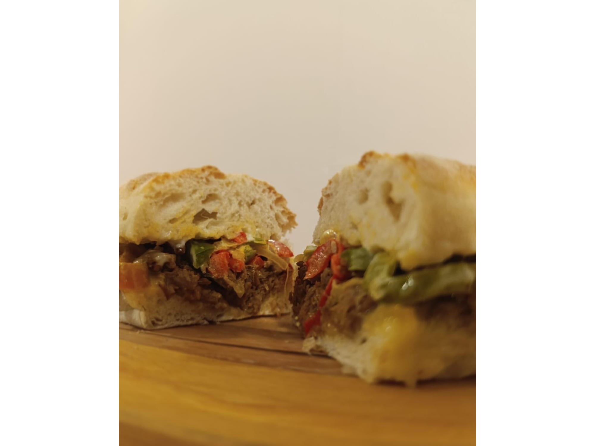 2 sandwiches de ternera desmenuzada + bebida 1,5 L2 sándwiches de ternera desmenuzada con verduras y queso en pan ciabatta + papas fritas + bebida 1,5 L$34.500$28.500 17% OFF Observaciones 0 / 150