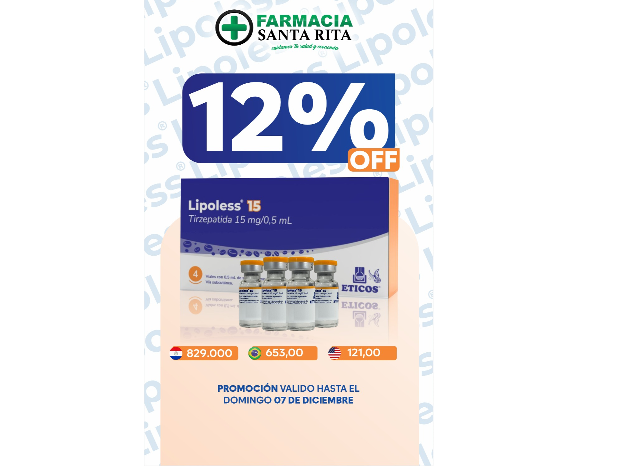 Lipoless 15 contém Tirzepatida, um medicamento injetável indicado para o tratamento do diabetes mellitus tipo 2 e como auxiliar na redução e controle do peso corporal em adultos.