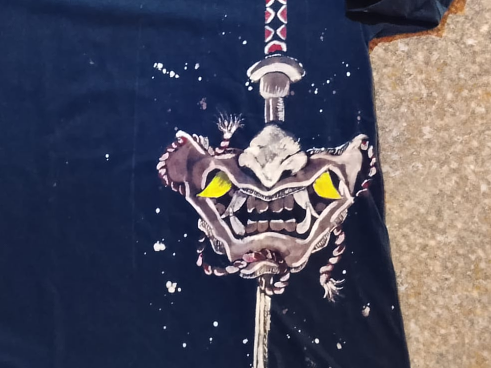 MASCARA ONI Compartir por WhatsApp Copiar enlace Última unidad 🎨 Remera pintada a mano con tecnica de decolorado (lavandina) 🎨 Diseño frontal y en la espalda, exclusivo y único, realizada de forma artesanal. ✔️ Talle: S (ancho: 55 cm, largo 65 cm) ✔️ Hecha a mano ✔️ Cada prenda es irrepetible$30.000 Observaciones 0 / 150 Encontrá productos relacionados REMERAS (4)