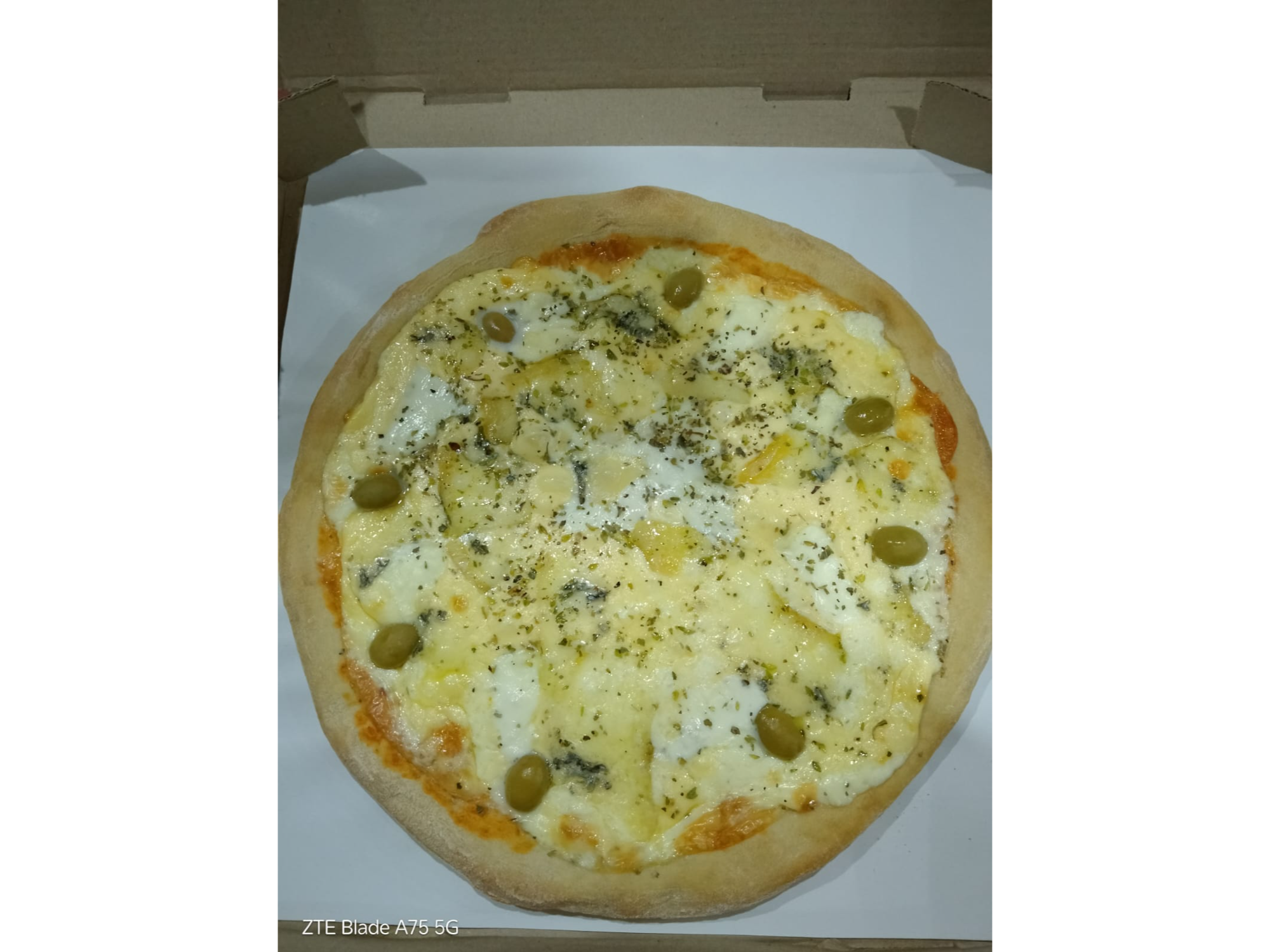 Cuatro quesosSalsa, mozzarella, queso tybo, queso cremoso, roquefort, orégano y aceitunas$14.000 Observaciones 0 / 150