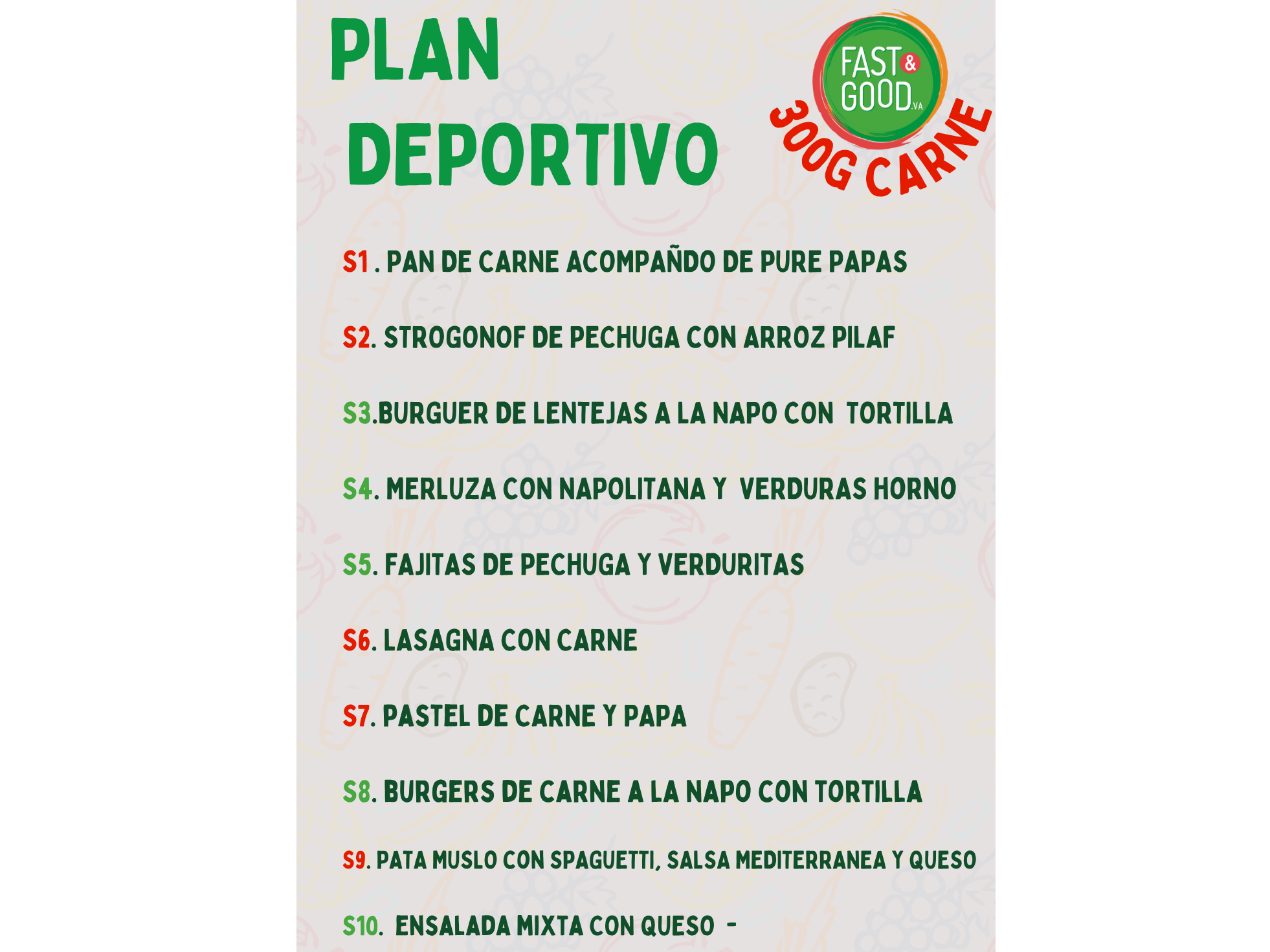 PLAN DEPORTIVO🥩 Plan Deportivo – Alto en Proteínas Pensado para quienes entrenan a diario y necesitan una buena ingesta calórica y proteica para acompañar su rendimiento y recuperación muscular. Cada menú incluye 300g de carne cocida, además de carbohidratos y vegetales frescos, logrando un equilibrio ideal entre energía y nutrientes. 💪 ➡️ Ideal para: Personas que realizan actividad física o deportes todos los días. Quienes buscan ganar masa muscular o mantener un alto rendimiento deportivo. ⚖️ Peso total por vianda: más de medio kilo. 🍽️ Perfectas para usar como almuerzos o comidas principales dentro de un plan activo. Presentaciones Seleccioná una opción.10 VIANDAS PLAN DEPORTIVO Precio promocional pago efectivo billete. $200.000$180.000 10% OFF 20 VIANDAS PLAN DEPORTIVO$376.000$340.000 10% OFF Observaciones 0 / 150