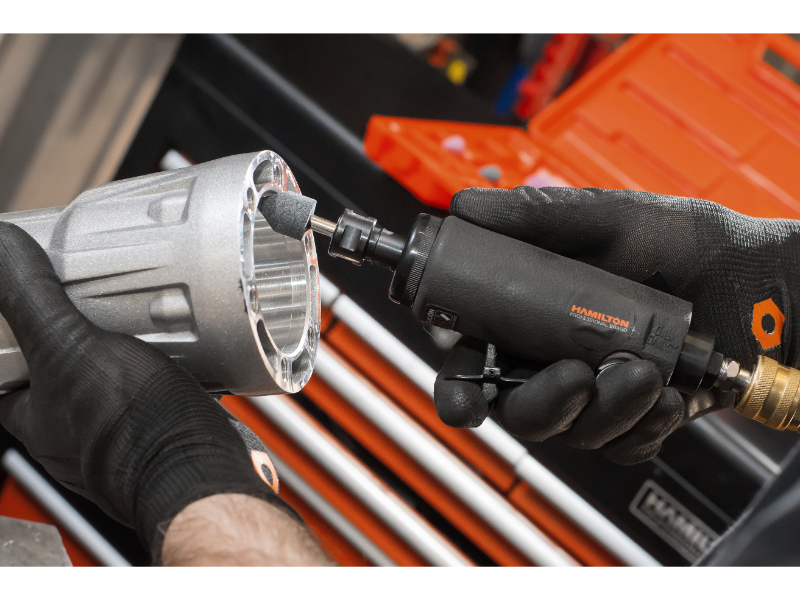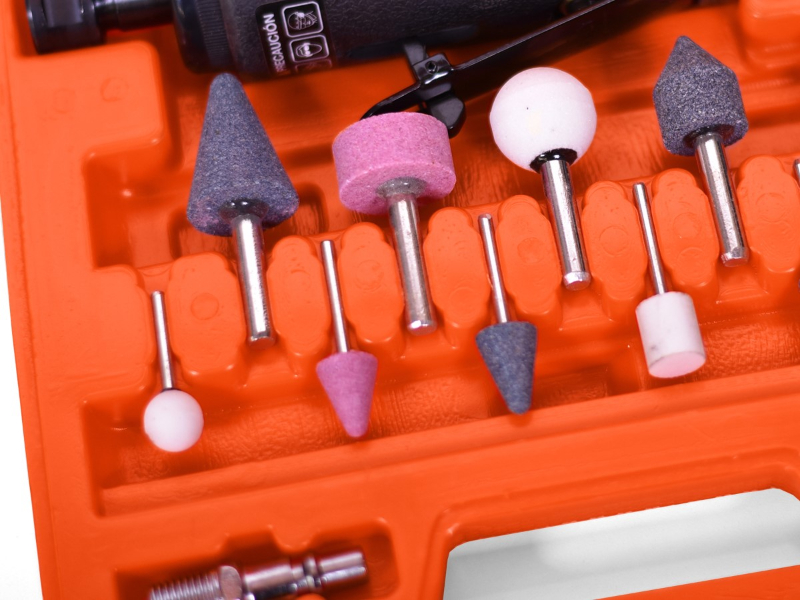 HN20KAmoladora recta neumática con accesorios - Hamilton Compartir SKU: HN20K Encastre 1/4″ y 1/8″ 90 PSI. (6,3 Bar.) – 22000 RPM Libre. – Entrada de aire de 1/4″. – Consumo de aire: 85 l/min. – Filtro antipolvo y partículas metálicas. KIT 14 PIEZAS – Fresa de 1/4″. – 2 Llaves. – 10 Modelos de piedra de desbaste. – Niple. – Mandril 1/8″. – Maletín plástico para guardado y transporte.$59.030 Observaciones 0 / 150