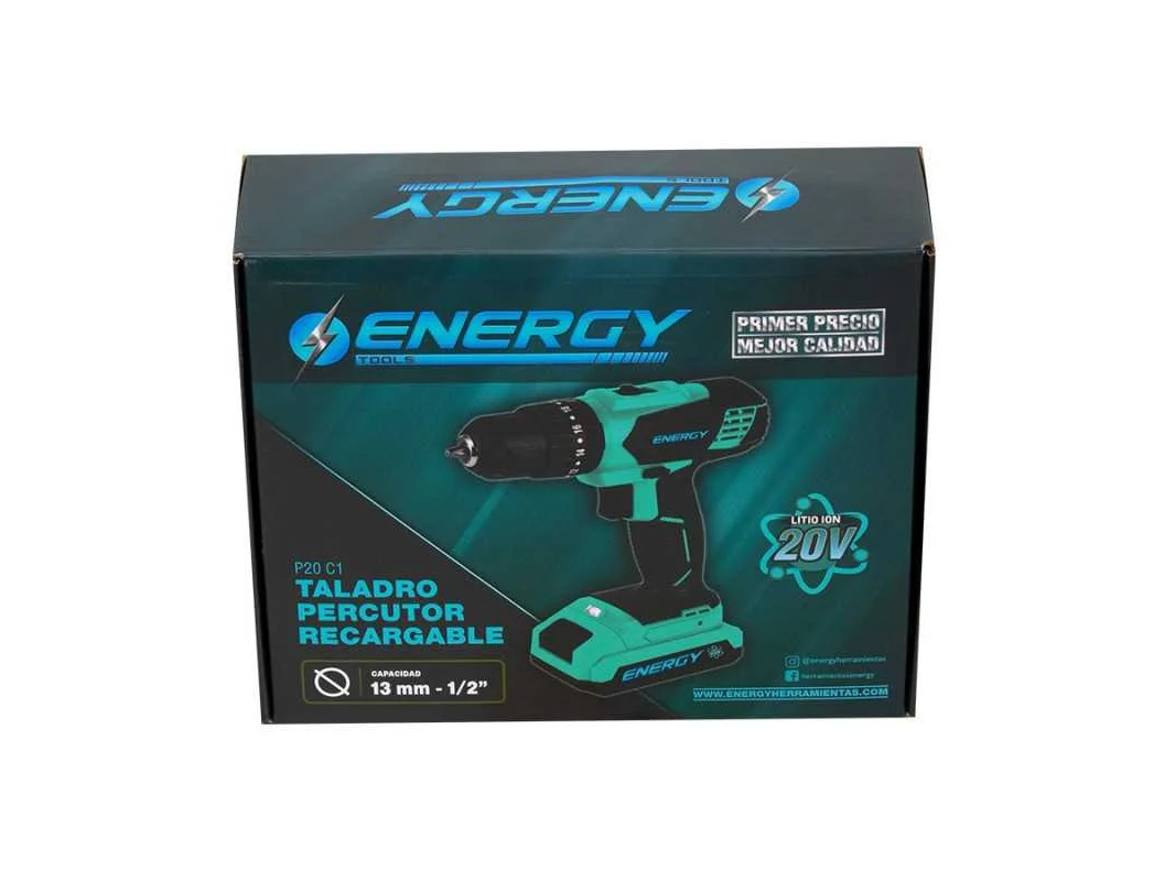 P20C1Taladro atornillador percutor 13mm 20V - Energy Compartir por WhatsApp Copiar enlace Características: - Capacidad del mandril: 13 mm - 1/2'' - Torque máximo: 32 Nm - Posiciones de torque: 20 - Tensión nominal: 18V - Tensión máxima: 20V - Tipo de batería: Litio - ion - Peso aproximado: 1,20 kg - Incluye: 1 batería 1.5 A y 1 cargador 2A Cargador de batería: - Tensión nominal del cargador: 100 - 240 V - Frecuencia: 50 - 60 Hz - Tipo de aislación: Clase II Con el taladro eléctrico Energy P20 C1 podrás realizar múltiples tareas en diversas superficies de un modo práctico y sencillo. Rotación e impacto: Al ser percutor, te facilitará tanto actividades domésticas como profesionales. Es ideal para hacer trabajos pequeños en paredes así como grandes obras en piezas más resistentes y robustas. Ligero y fácil de manejar: Al no haber cables de por medio, vas a sentirte más cómodo al manipularlo. Además, causa menos fatiga tras un uso intensivo. No se presentarán problemas como no encontrar un contacto o que el cable sea muy corto para el área donde lo vas a utilizar.$85.359 Observaciones 0 / 150
