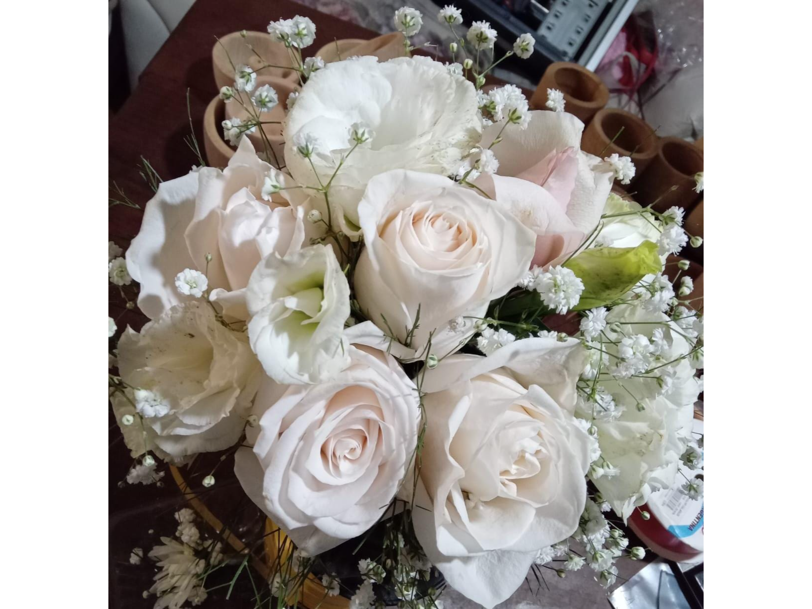 Bouquet Amor Sagrado Compartir por WhatsApp Copiar enlace Bello ramo de rosas blancas y lisianthus con poco follaje en un delicado y armonioso bouquet .$120.000 Observaciones 0 / 150