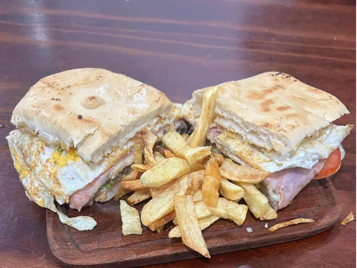 Lomo 100% completoPan de lomo, lechuga, tomate, huevo, jamon, queso tybo, bife de lomo de 200g. mayonesa casera, chimi.$16.000 Observaciones 0 / 150