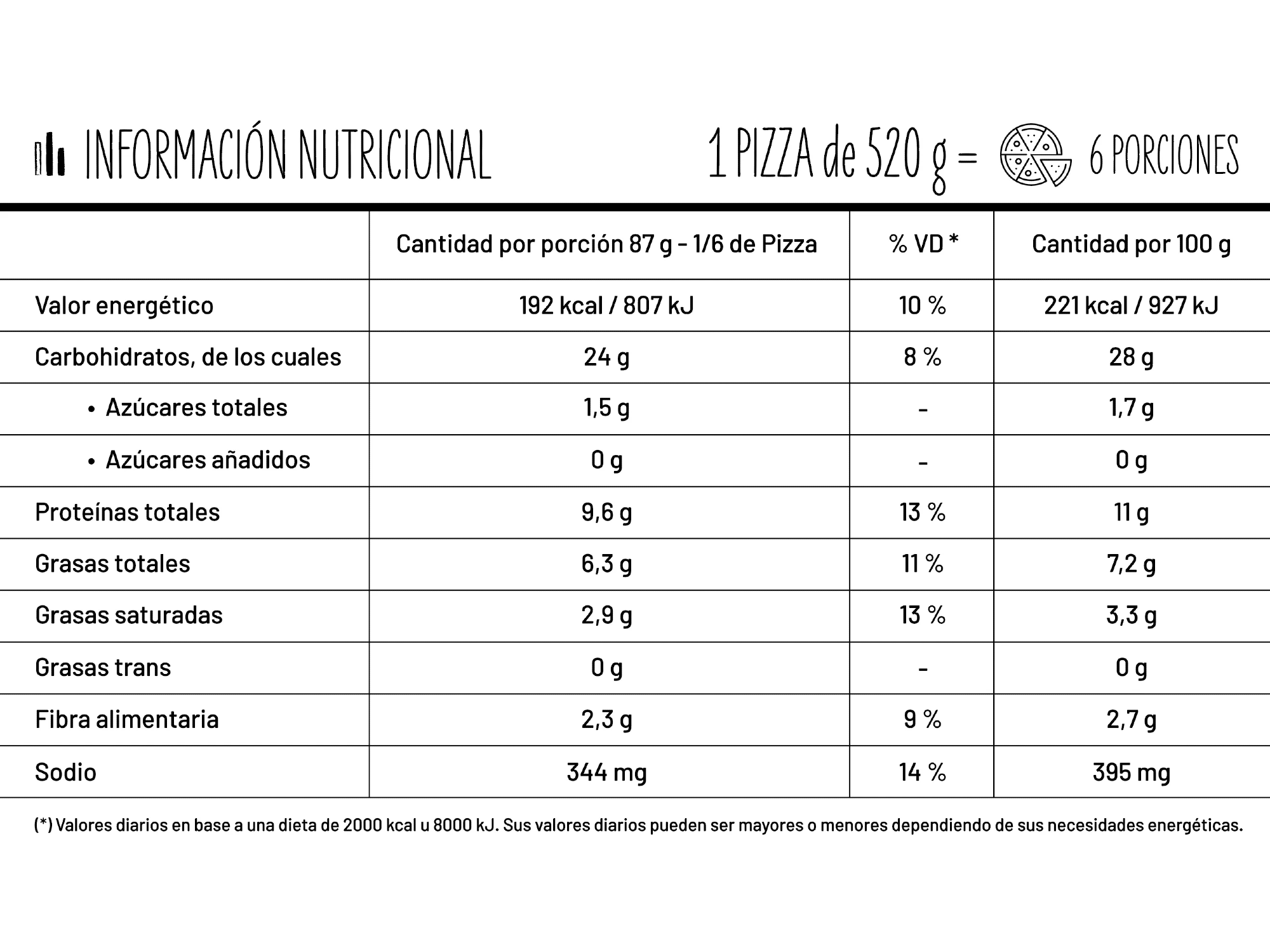 Las pizzas vienen en cajas de a 1 unidad (520gr).