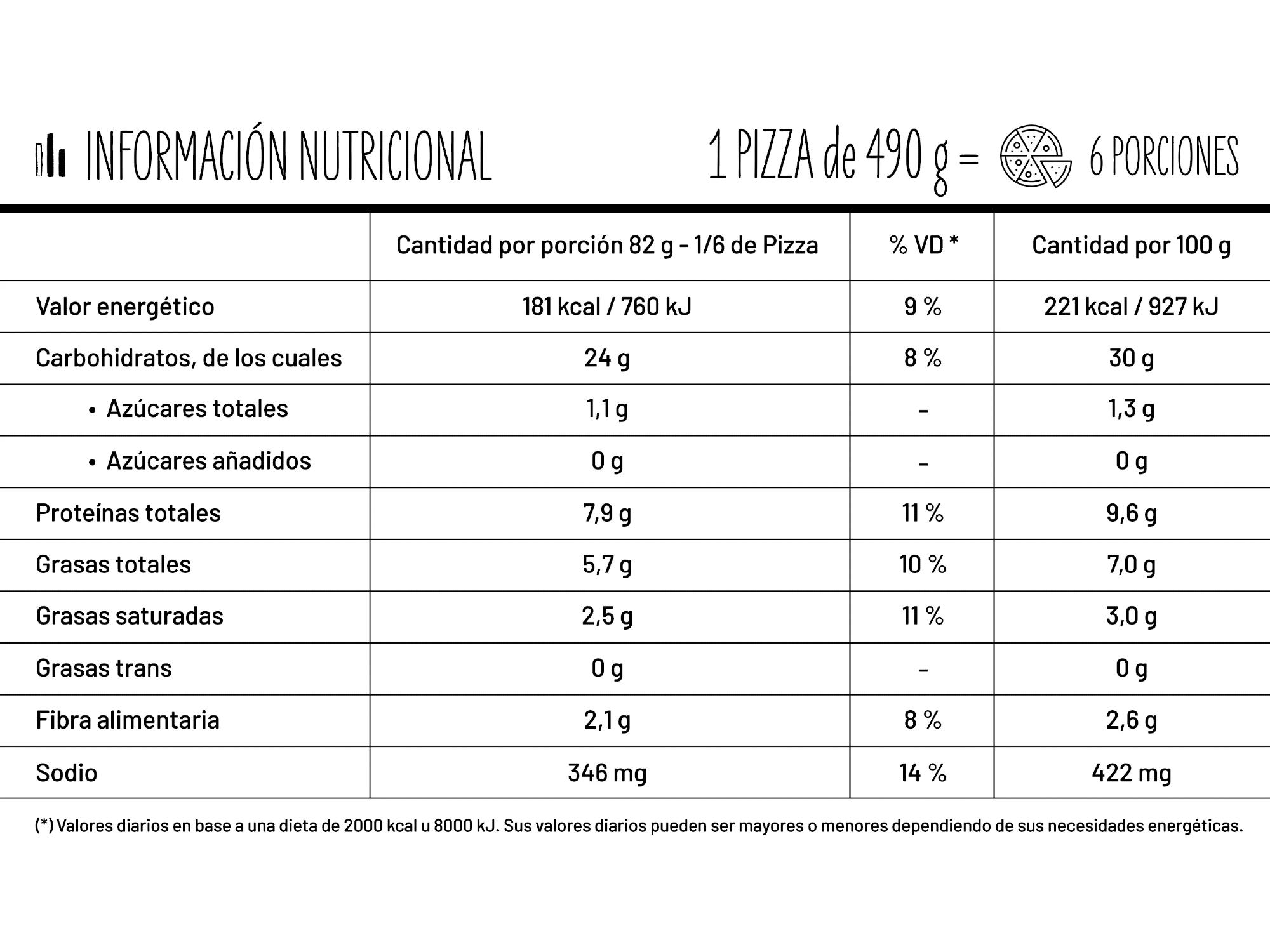 Las pizzas vienen en cajas de a 1 unidad (490gr).