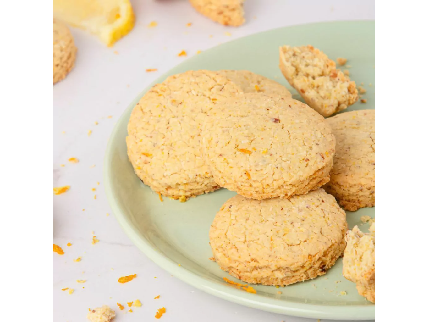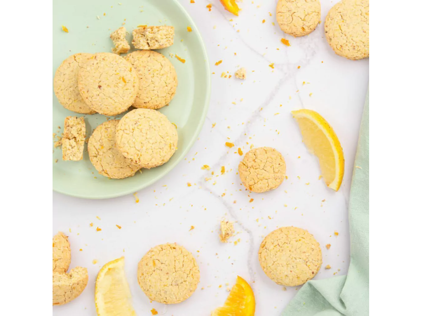 Ingredientes : Huevo, harina de arroz, fecula de mandioca, eritritol, ghee, harina de almendras, harina de coco, harica de maiz, polvo de hornear, extracto de naranja, vainilla. Alto en proteina, grasas saludables y fibra.