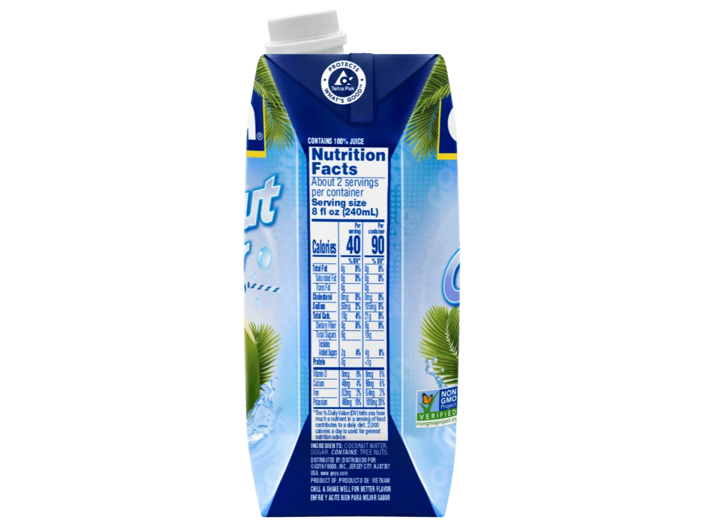 El Agua de Coco Goya es una opción libre de grasas, vegana y sin colesterol, además de no contener jarabe de maíz con alta fructosa. Su alto contenido en potasio (480 mg por porción) ayuda a reponer electrolitos de manera natural, siendo perfecto para toda la familia, tanto adultos como niños.