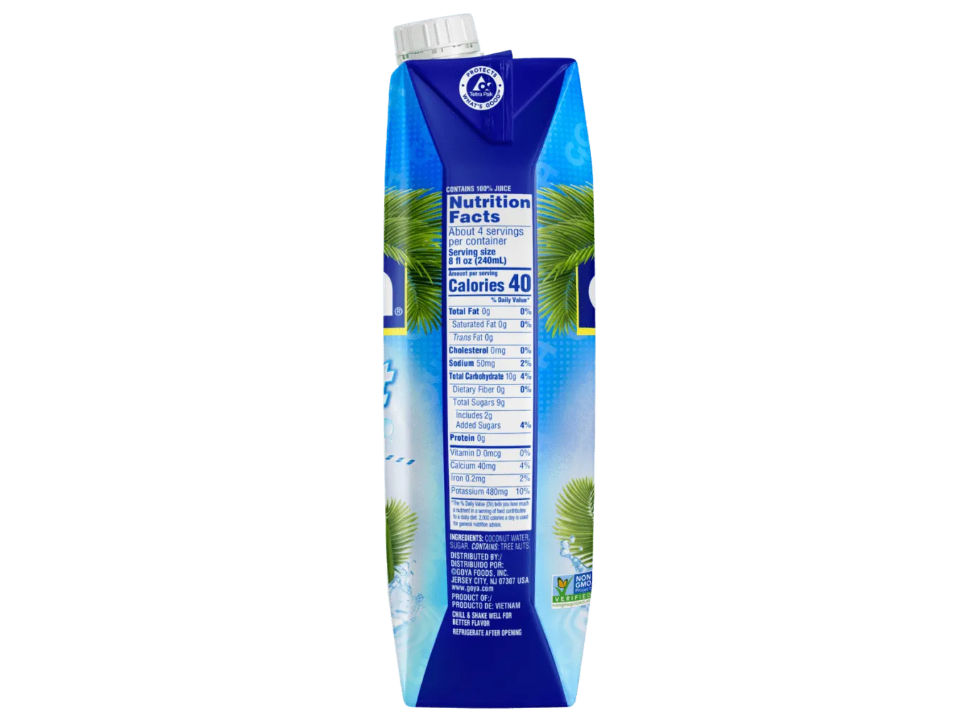 El Agua de Coco Goya es una fuente natural de hidratación gracias a su contenido de potasio (480 mg por porción), que ayuda a mantener el equilibrio electrolítico y favorece la función muscular. Además, aporta calcio y hierro en cantidades moderadas, contribuyendo a una dieta equilibrada.