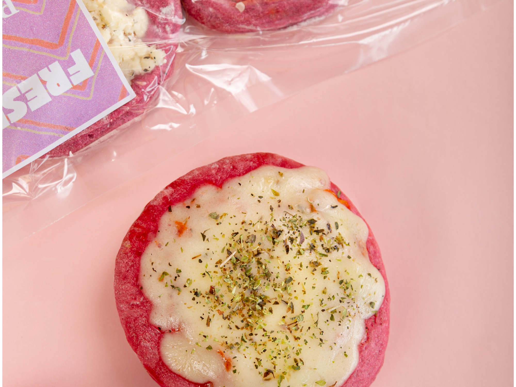 Mini Pizzetas en masa de remolacha, pensadas y preparadas para resolverte comidas nutritivas y caseras para tu familia.