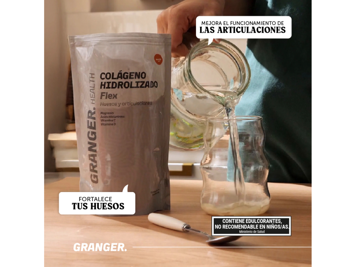 Disolver una porción (10 g aprox.) en agua, jugo o bebida a elección.