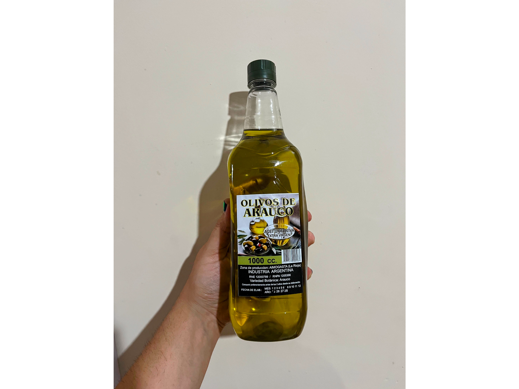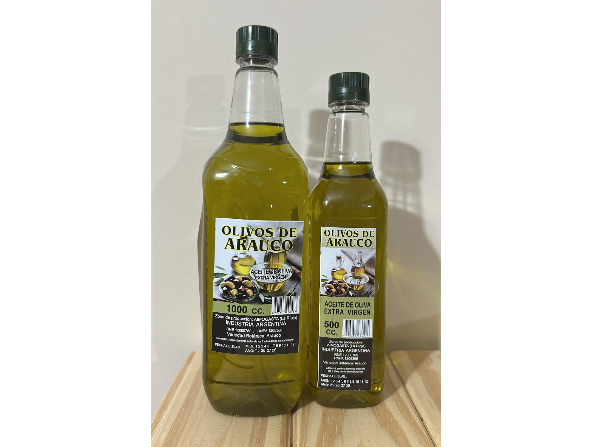 Aceite de oliva: Olivos de AraucoAcite de Oliva Extra Virgen. Zona de producción: Aimogasta, La Rioja. Variedad botánica: Arauco. Presentaciones Seleccioná las opciones que quieras.x 500ml$4.500x 1Litro$8.200 Observaciones 0 / 150