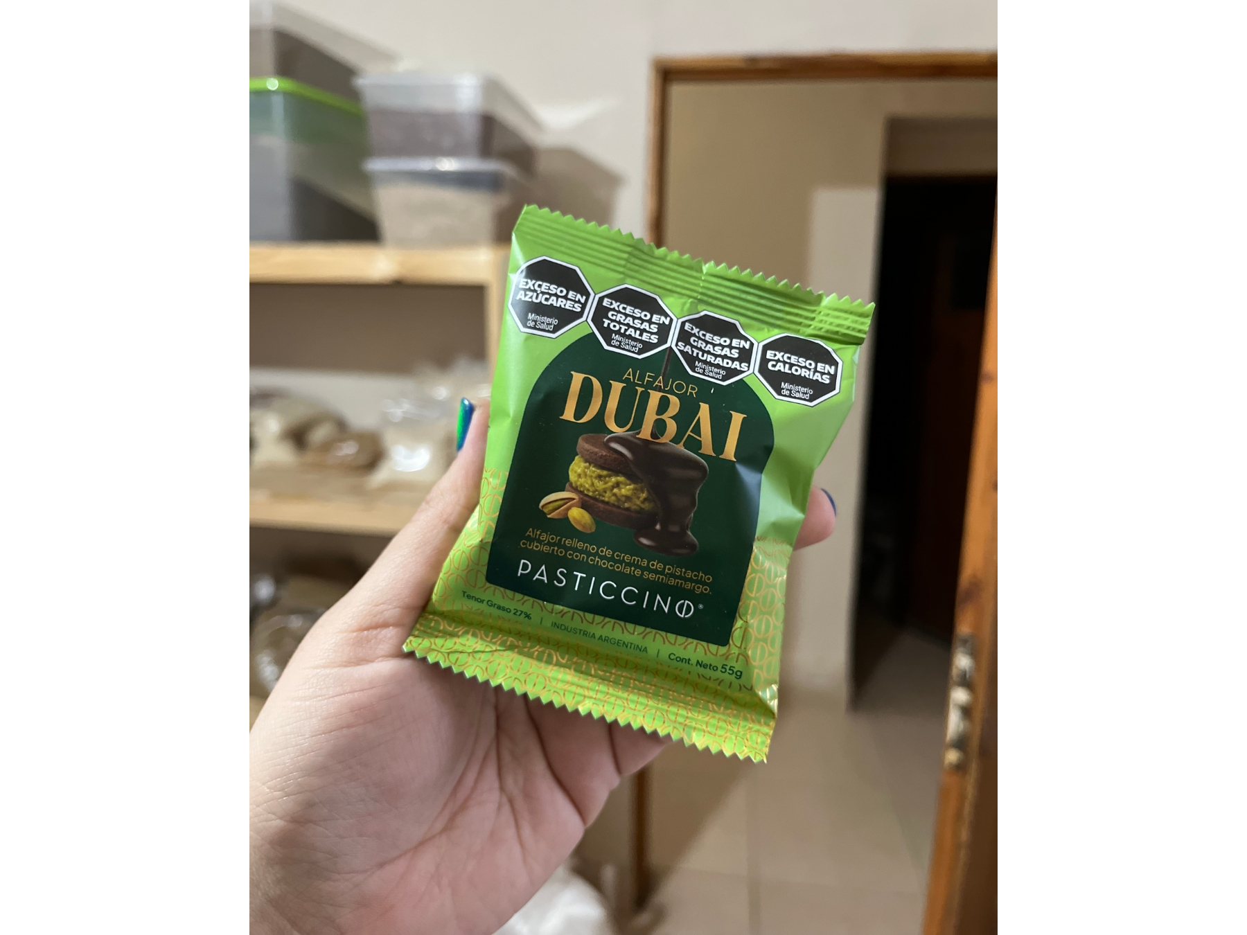 Alfajor Dubai crema de Pistacho y Chocolate AmargoAlfajor Dubai crema de pistacho y chocolate amargo Pasticcino 60g. Sabor sofisticado, relleno cremoso y cobertura intensa. Ideal para quienes buscan una experiencia dulce premium.$3.000$2.500 17% OFF Observaciones 0 / 150 Encontrá productos relacionados NUEVOOOO (14) OFERTA (5) BAJO DE PRECIO (1)