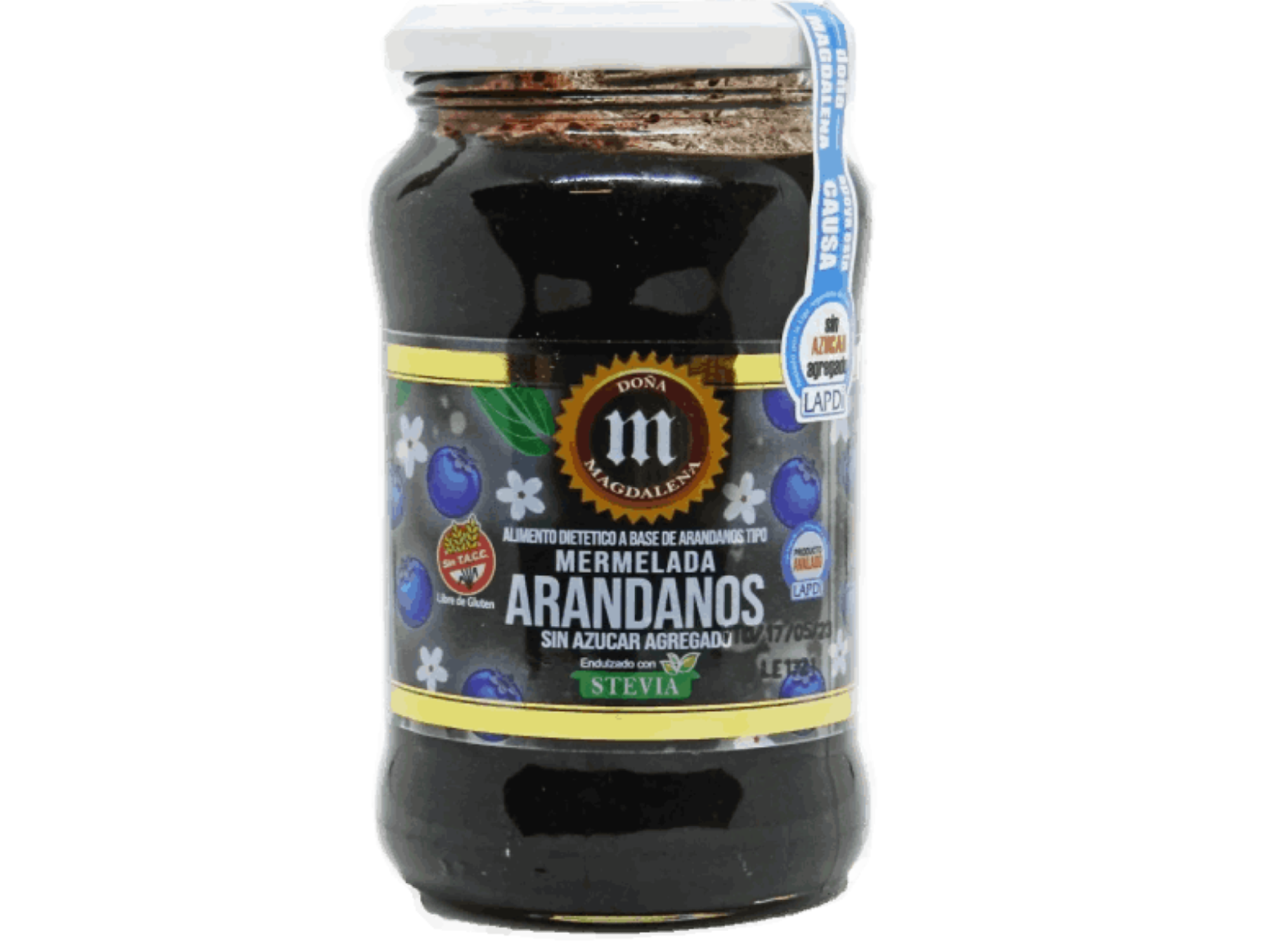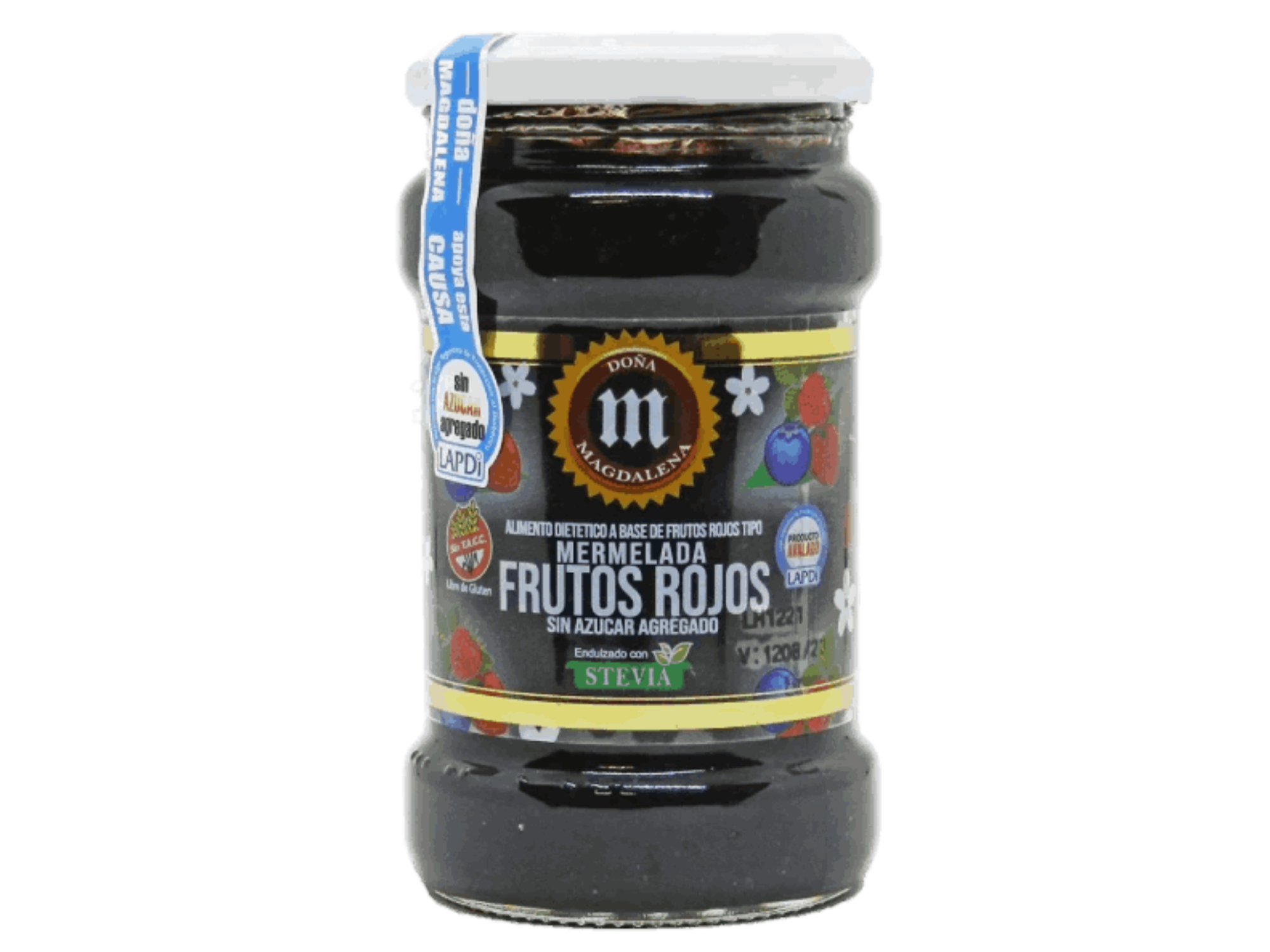 La Mermelada Doña Magdalena sin azúcar, endulzada con stevia, conserva el sabor natural de la fruta con una textura suave y equilibrada, ideal para quienes buscan una opción más saludable.
