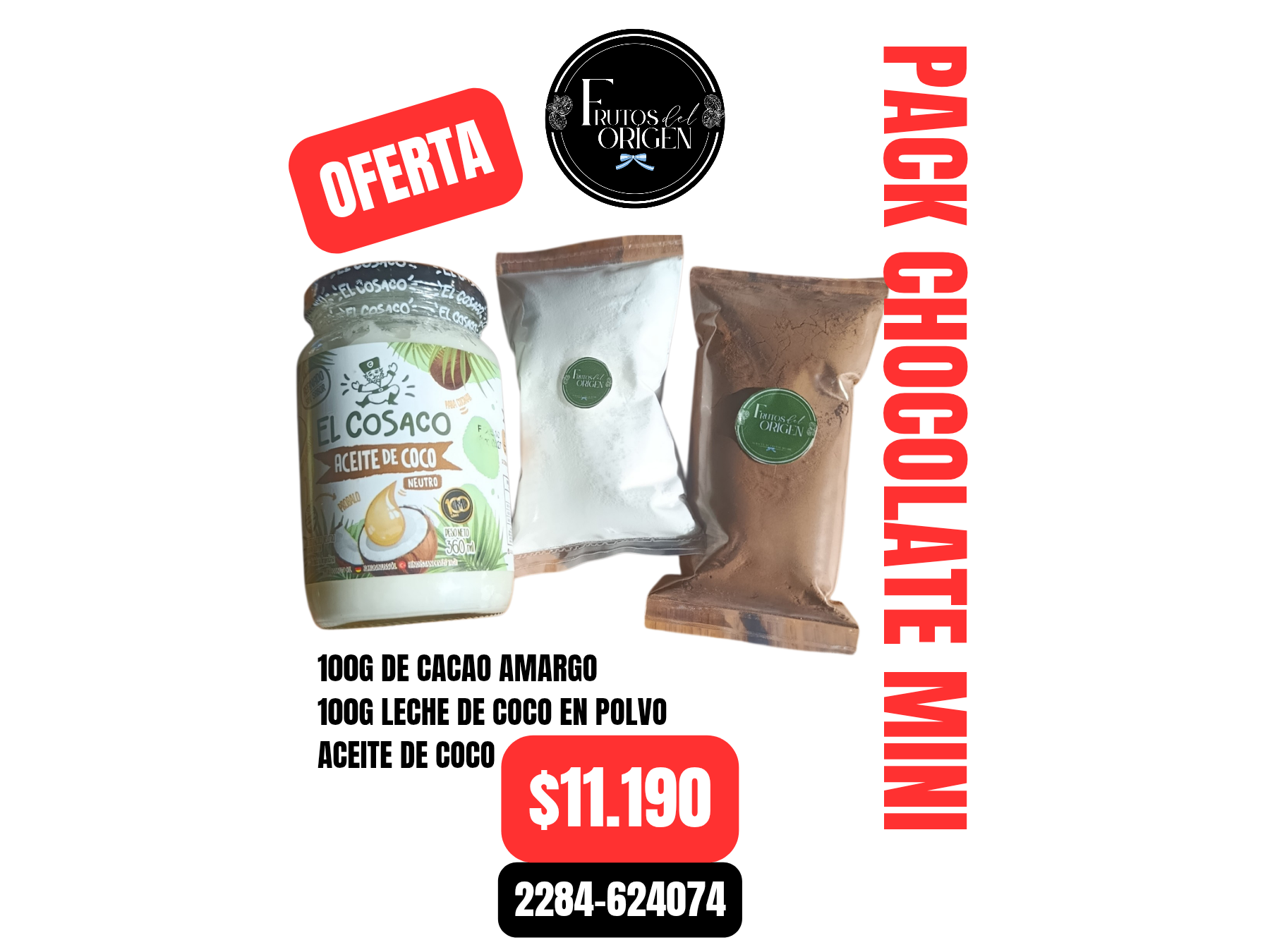 Pack chocolate Compartir por WhatsApp Copiar enlace Max : 250g Cacao Amargo 100g Leche de coco en polvo Aceite de coco x360g Mini: 100g Cacao Amargo 100g Leche de coco en Polvo Aceite de coco Presentaciones Seleccioná una opción.Max 2 unidades en stock $14.190Mini 2 unidades en stock $11.190 Observaciones 0 / 150