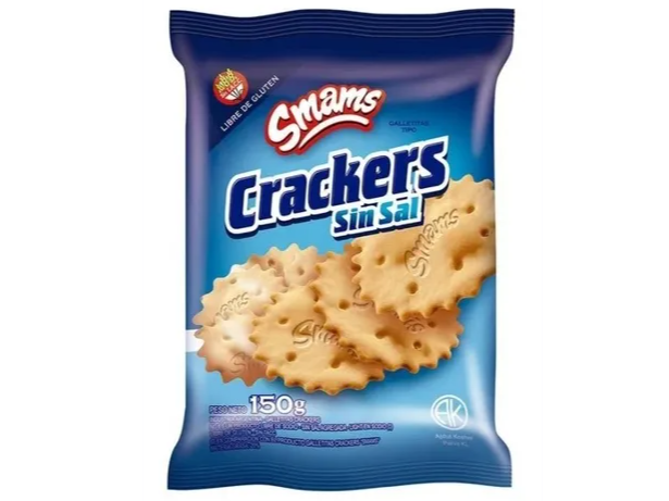 Disfrutá las galletitas crackers de la marca Smams sin gluten, ideales para acompañar tus comidas o sumar a tus snacks diarios.