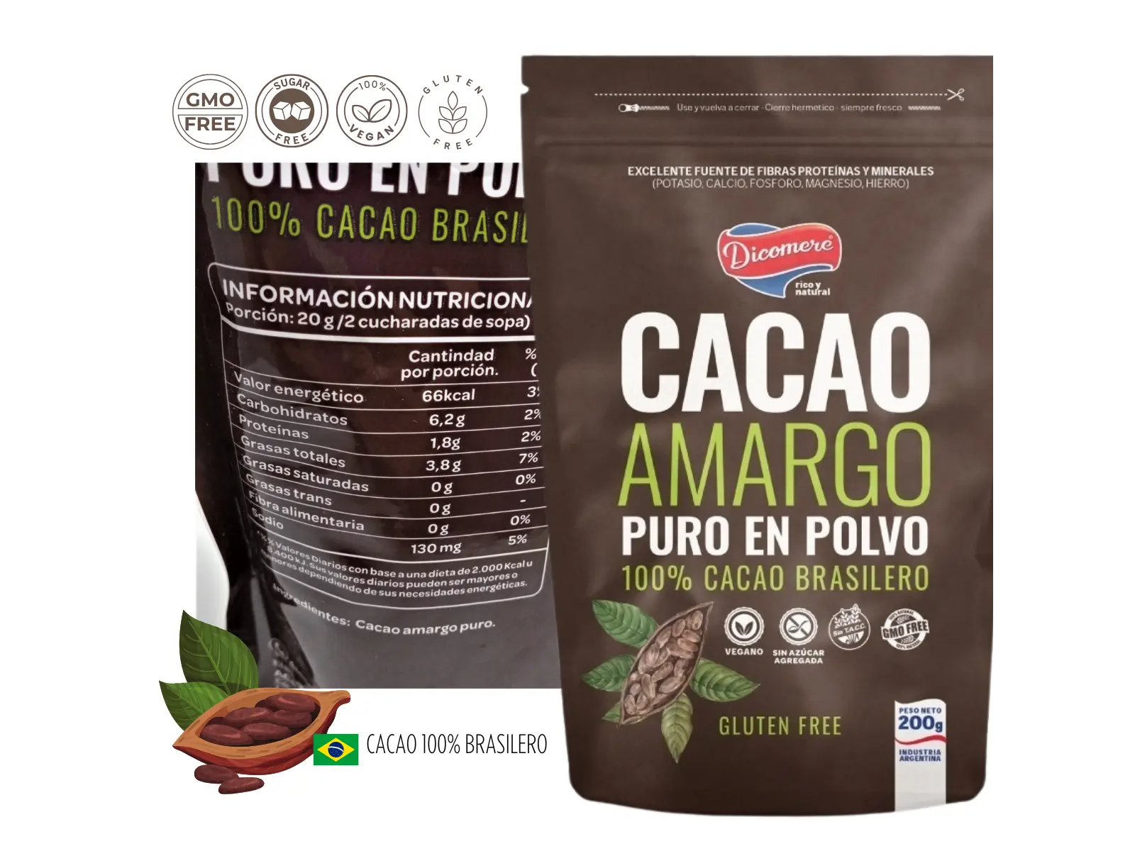 2 unidades en stock 🍫 Cacao Amargo Dicomere (200g): Intensidad y Pureza Sin TACC