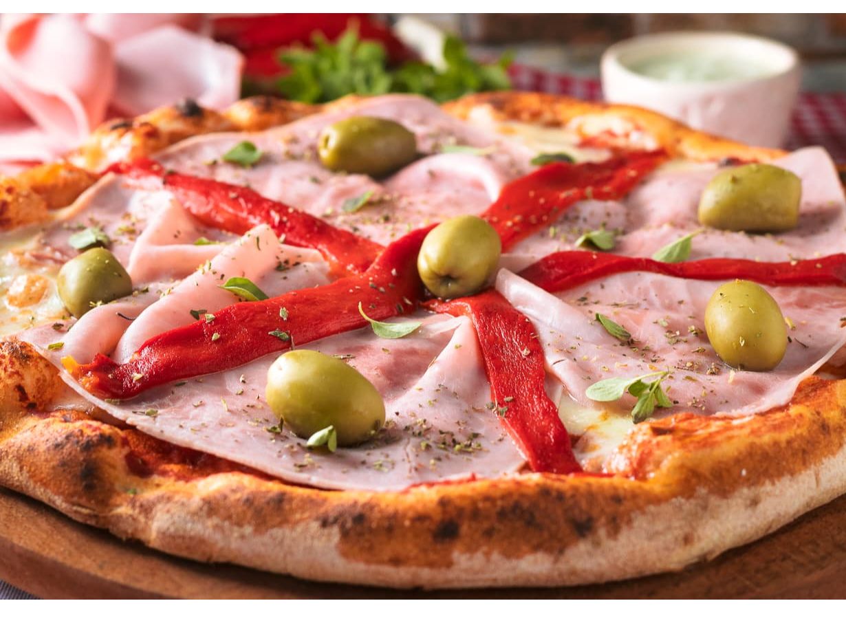 JAMON Y MORRONES Compartir Mozzarella , Salsa Pomodoro , Jamon Cocido , Pimiento Asado ,Oregano ,Aceitunas . Presentaciones Seleccioná una opción.PIZZA$14.3001/2 PIZZA LAS MITADES SOLO SE PUEDE PEDIR CONBINANDO DOS MITADES $7.650 Observaciones 0 / 150