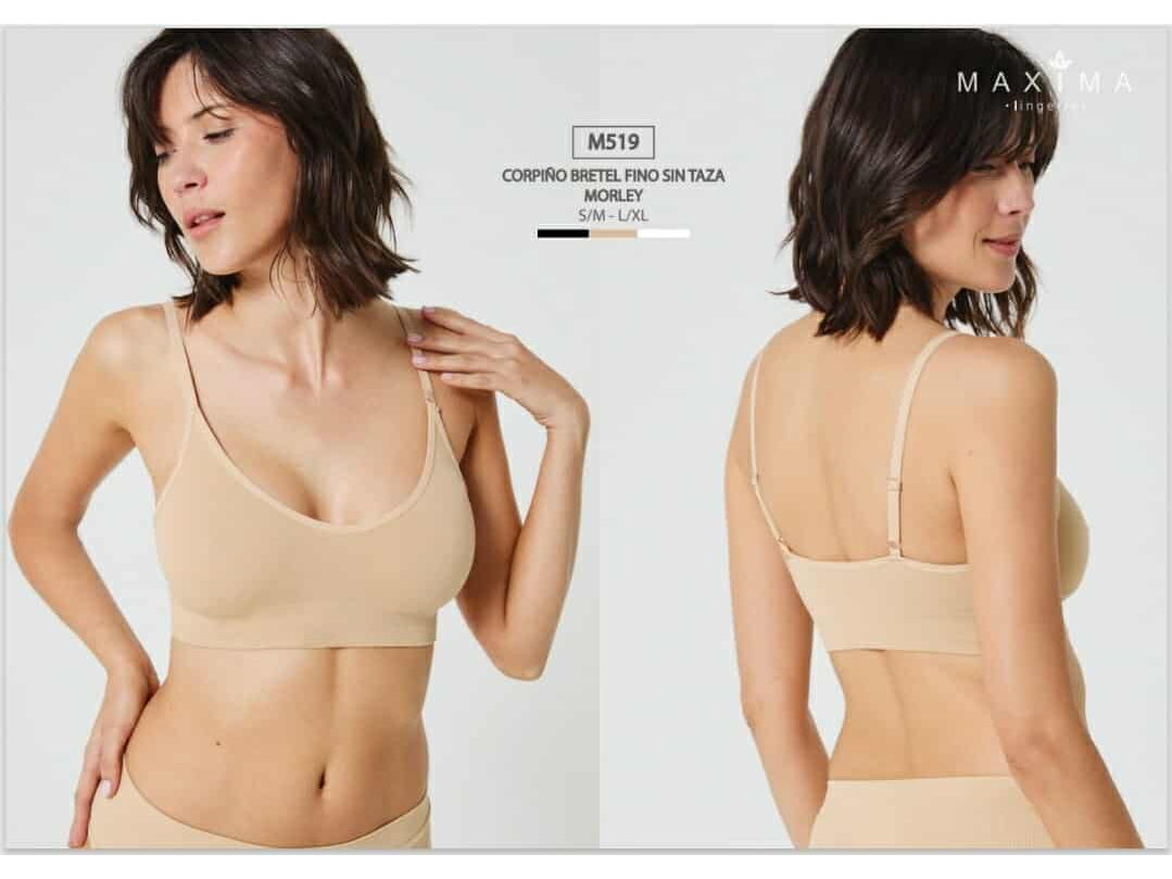 Art M519 Corpiño Morley de Bretel Fino Sin Taza Talles S/M L/XL Marca Maxima Blanco Visón Negro
