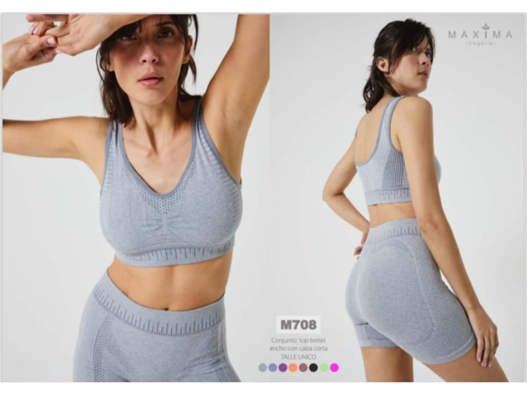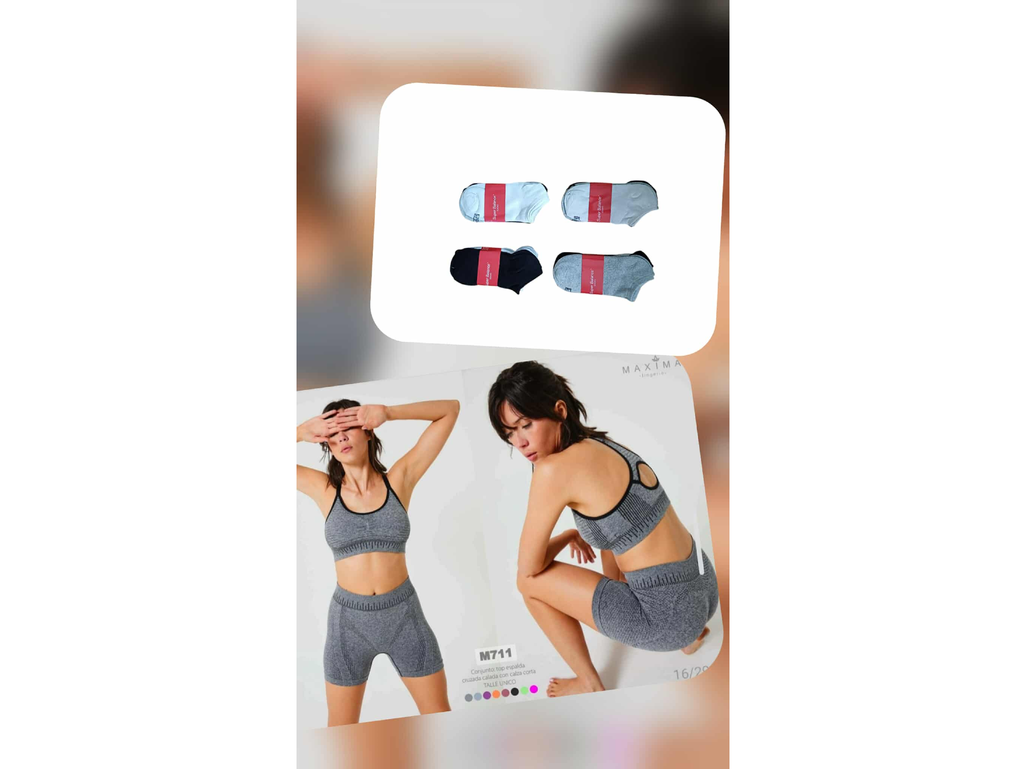 Art OFERTA Conjunto Top Deportivo Bretel Ancho + Calza Corta Push Up Lycra Único Talle Marca Maxima + DOCENA DE SOQUETES Colores Surtidos