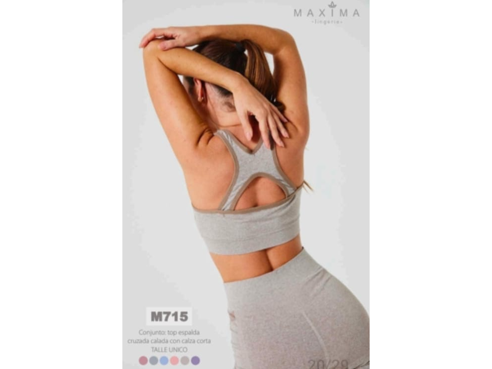 M715-CONJUNTO DEPORTIVO Compartir Art M715 Conjunto Top Deportivo Espalda Cruzada Calada + Calza Corta Push Up Lycra Único Talle Marca Maxima Colores Surtidos Presentaciones Seleccioná las opciones que quieras.C/U 1 CONJUNTO $10.500 Observaciones 0 / 150 Encontrá productos relacionados MUJER (117)