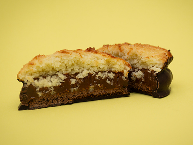 Choco CocoMasa de Vainilla, relleno de Dulce de Leche y tapa de masa de Coco con medio baño de Chocolate Semiamargo$3.300 Observaciones 0 / 150