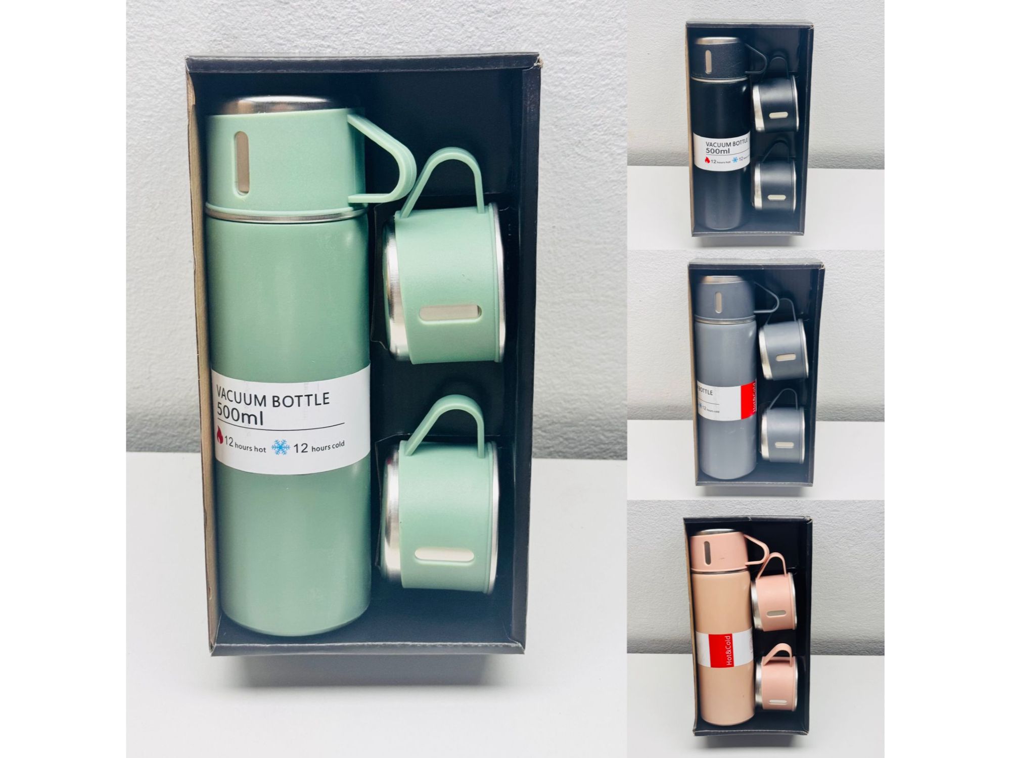 Termo de acero inoxidable 500 ml Compartir 🔥 Termo de acero inoxidable 500 ml🔥 ❄️ Mantiene tus bebidas 12 hs caliente / 12 hs fría ☕ Viene con 2 tazas a juego 🩵 Colores disponibles: verde menta, azul, gris y rosa 💪 Resistente, liviano y fácil de llevar PRECIO $6.490$6.490 Observaciones 0 / 150