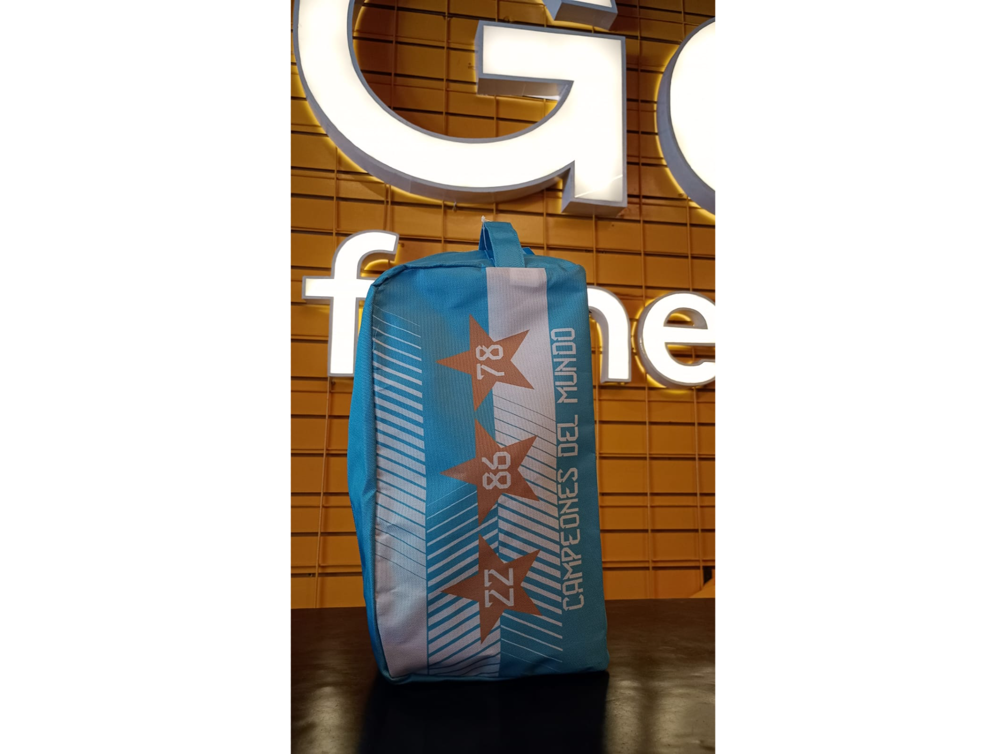Llevá los colores de la Albiceleste a todas partes con el nuevo botinero de la Selección Argentina. Este botinero es perfecto para acompañarte a cada partido o entrenamiento. Incorpora una práctica manija de mano para que lo lleves cómodamente a donde vayas. Su amplio espacio interior te permite guardar tus botines, canilleras, guantes, medias, vendas, ropa y cualquier otro accesorio que necesites para jugar al fútbol. ¡Demostrá tu orgullo argentino incluso cuando no estás en la cancha! Producto de Licencia Oficial de la AFA.