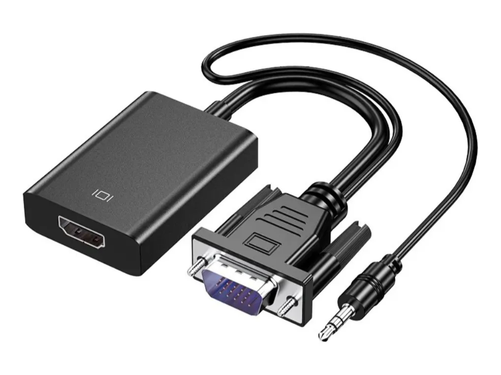 Cable Adaptador Conversor VGA Macho a HDMI Hembra de 20 cm de largo con salida de audio a través de conexión auxiliar Jack 3.5mm. Resolución de video soportada HD 1080p.