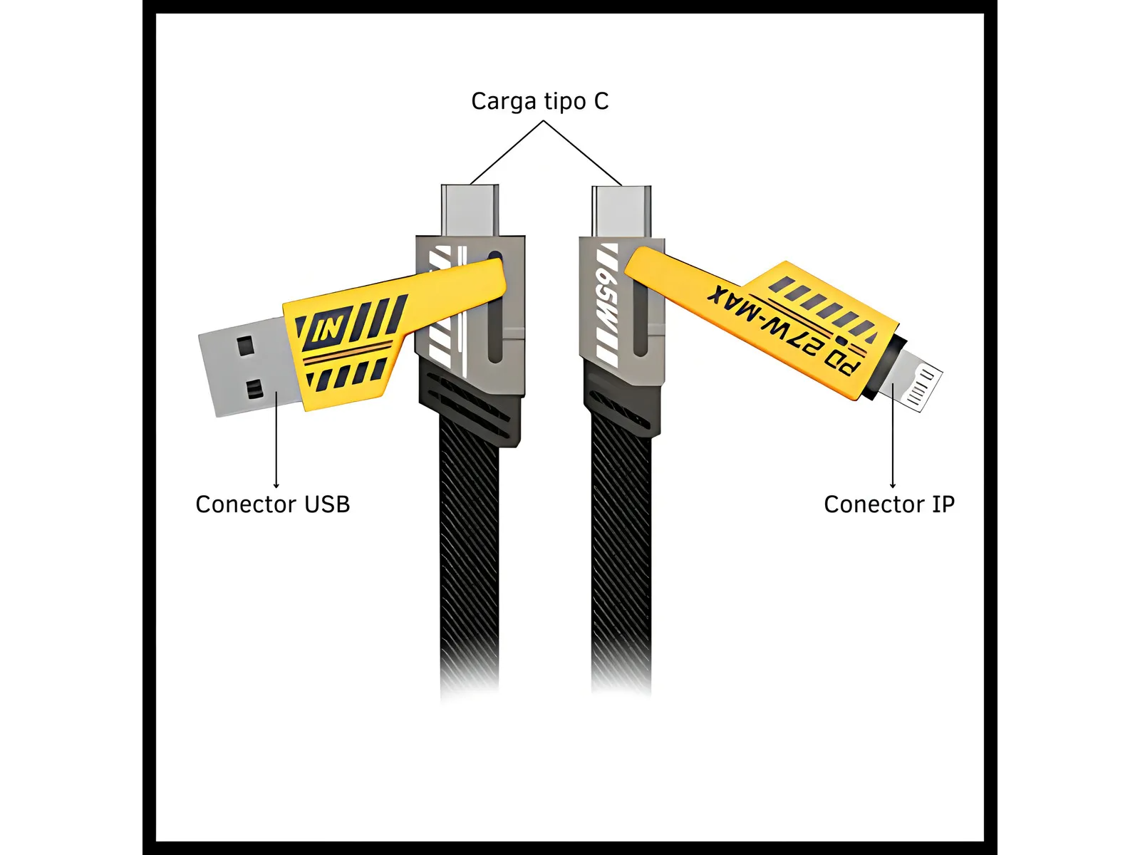 Cable USB Tipo C para Iphone Android 65w Usb A y C 4 en 1 Compartir Con entrada USB y USB-C y salida USB-C y tipo IP. Marca compatible: Todas las marcas. Largo del cable: 1m.$7.000 Observaciones 0 / 150