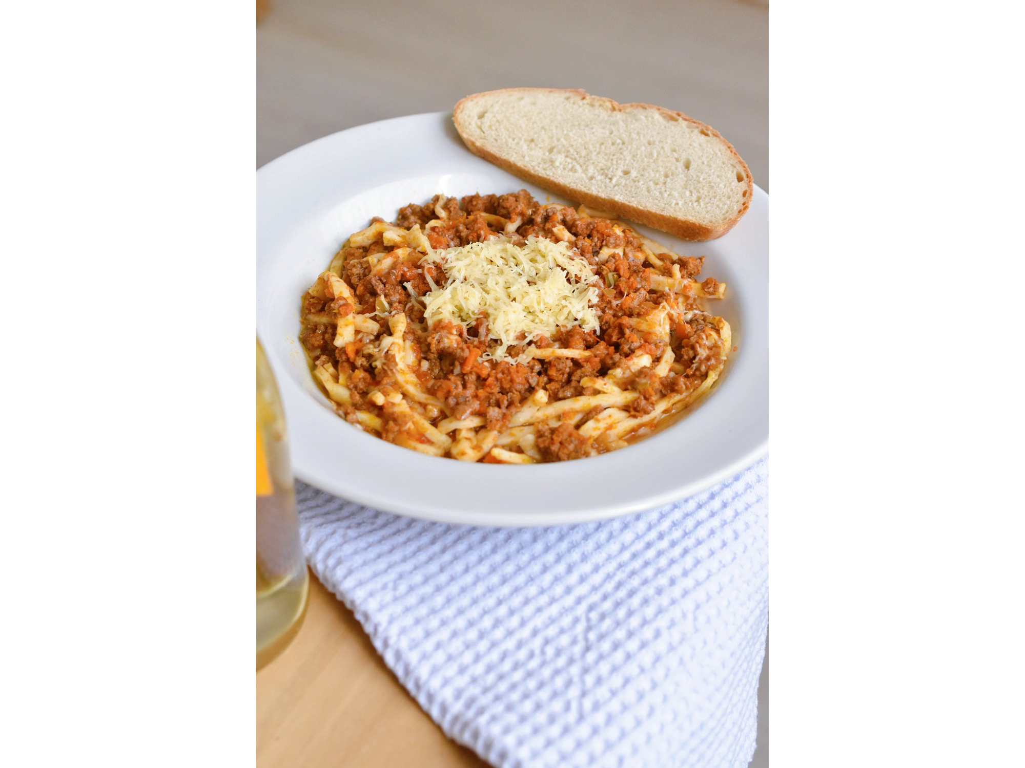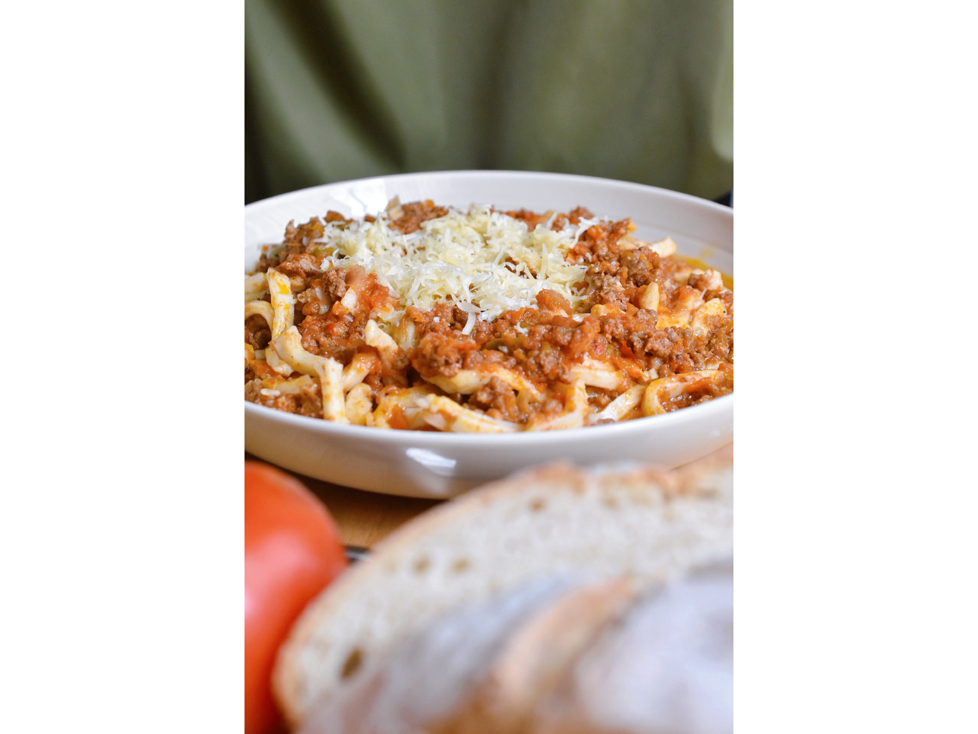 Fideos con salsa bolognesaFideos caseros acompañados de una clásica salsa bolognesa de carne y tomate, sabrosa y reconfortante. Valores Nutricionales: Peso: 500 grs. Alto contenido de carbohidratos y proteínas. Aporte de hierro y vitaminas del complejo B.$8.505 Observaciones 0 / 150