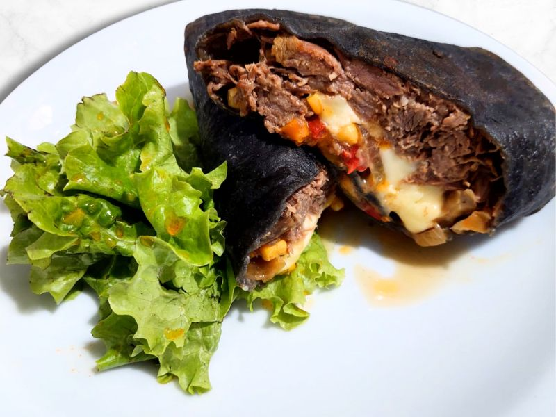 Wraps Black de TerneraWrap con masa de carbón activado relleno de carne de ternera jugosa, vegetales y aderezos frescos. Valores Nutricionales: Peso: 420 grs. Fuente de proteínas, hierro y zinc. Rico en fibras y antioxidantes naturales.$10.605 Observaciones 0 / 150
