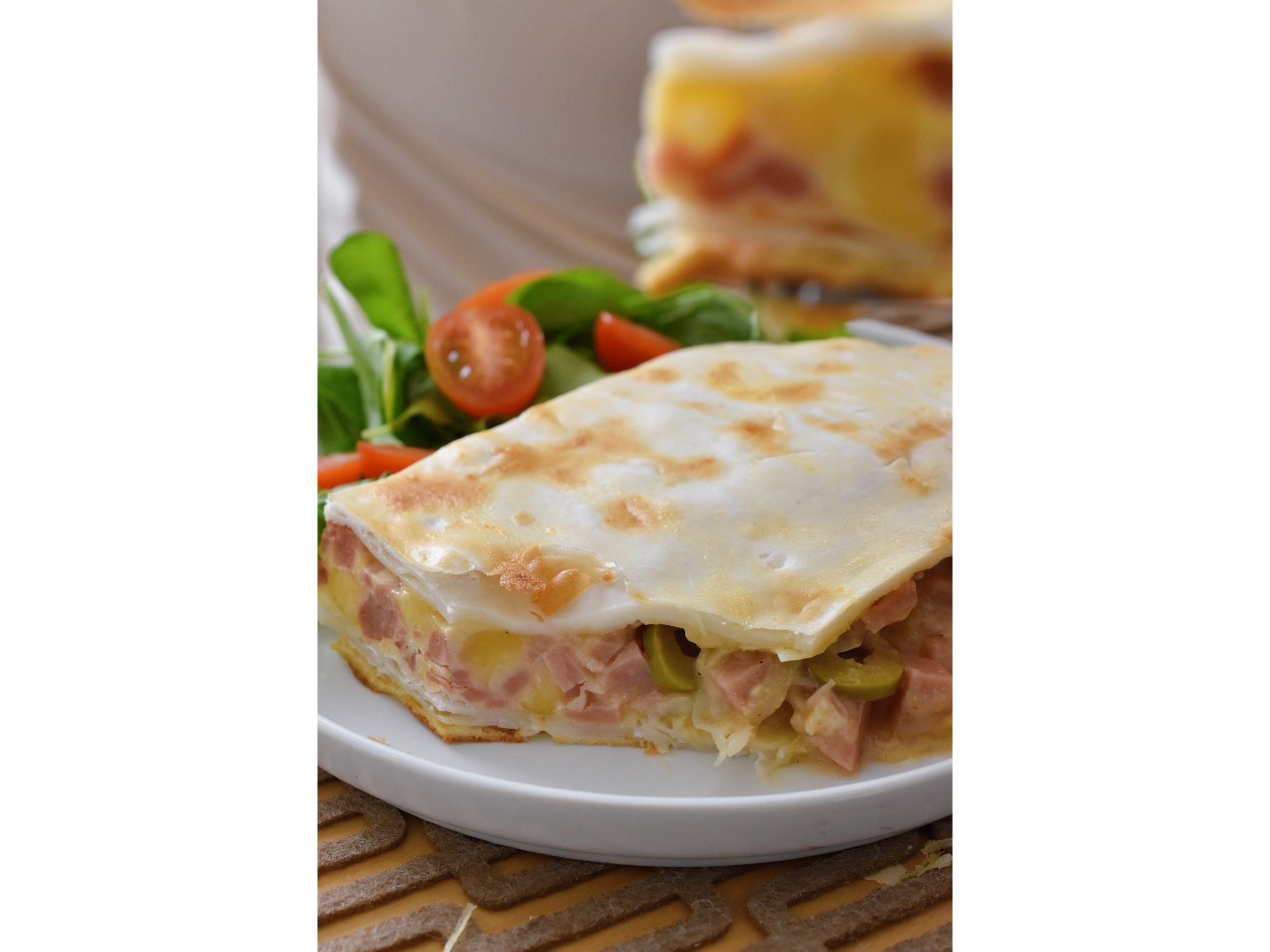 Tarta de jamón y quesoClásica tarta rellena de jamón cocido y queso fundido, en una base crocante. Valores Nutricionales: Peso: 350 grs. Alto contenido en proteínas y calcio. Fuente de hierro y fósforo.$7.665 Observaciones 0 / 150