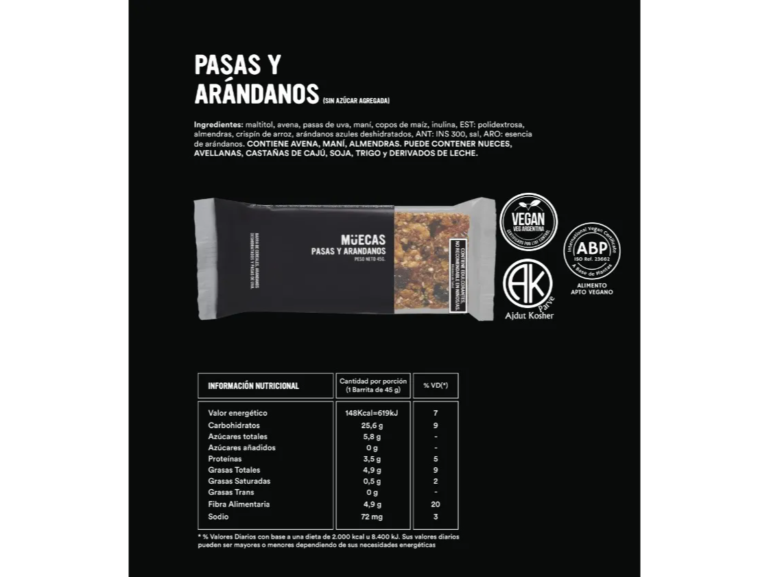 Barra Barrita Cereal Muecas Sabores Surtidos Compartir Presentaciones Seleccioná las opciones que quieras.Cacao y avellanas$1.600Pasas y arándanos$1.600Pasas y almendras$1.600Manzana y arándanos$1.600Banana y dulce de leche$1.600Surtidas x 4$6.200Caja x 16 unidades surtidas$25.000 Observaciones 0 / 150