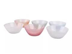 9 unidades en stock Set de bowls de vidrio compuesto por 6 unidades, diseñado para un uso versátil en la cocina y la mesa. Fabricados en vidrio resistente, son adecuados para servir postres, frutas, salsas o snacks. Sus medidas de ofrecen un tamaño práctico para porciones individuales. Presentan colores variados que facilitan la identificación del contenido y aportan un toque decorativo. Son fáciles de limpiar y aptos para el uso diario.