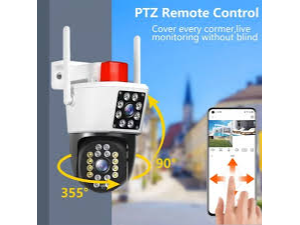 Cámara PTZ inteligente exterior con enlace de pistola y bola: Cámara de bola Wi-Fi 4MP (2MP*2), una cámara equivale a dos cámaras tradicionales. Viene con un soporte ajustable en todas las direcciones (arriba, abajo, izquierda y derecha), lo que facilita la instalación. - Soporta conexión inalámbrica a la red. - Soporta modos de visión en color completo, infrarrojo y modo de alarma inteligente. - Soporta reducción de ruido 2D/3D y amplio rango dinámico digital. - Tecnología de compresión de video H.265, calidad de imagen en alta definición.