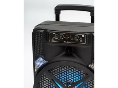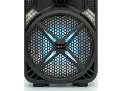 El parlante ORYX Mercury de 12” es un equipo de audio portátil orientado al uso recreativo. Cuenta con una potencia declarada de 35 W e integra conectividad Bluetooth, radio FM, puertos USB, SD y entrada auxiliar para reproducir música desde distintos dispositivos. Incorpora luces LED frontales multicolor, micrófono inalámbrico y control remoto. Su batería recargable, junto con el asa extensible y ruedas, facilita el transporte y el uso en diferentes espacios.