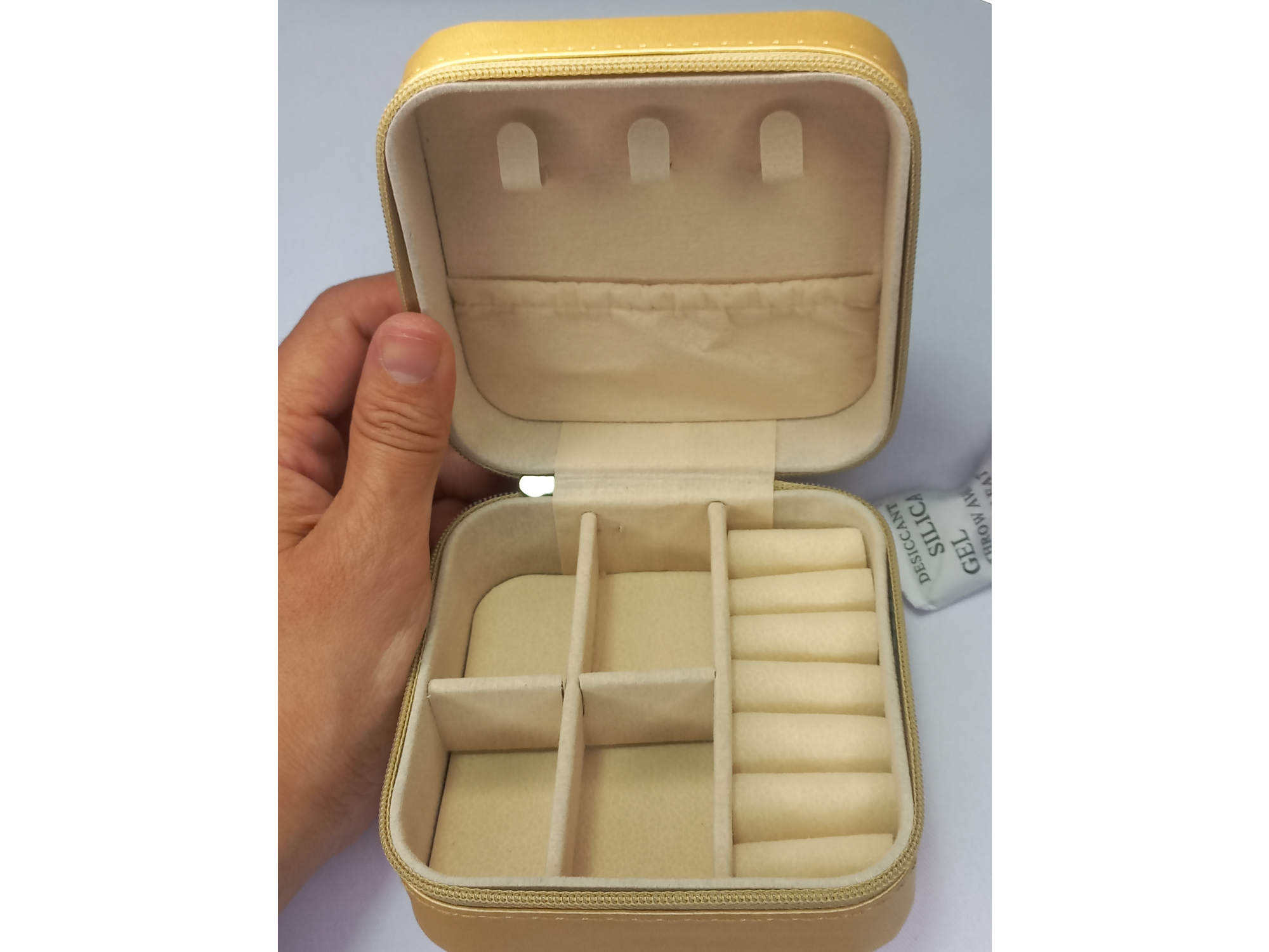JY2 Compartir Color dorado Material: poliéster Separadores: desmontables Cierre: Cremallera Apto: Anillos, collares, aros, pulseras, pequeños cosméticos Estilo: portátil Tamaño del producto: 10 × 10 x5cm$15.000$12.000 20% OFF Observaciones 0 / 150