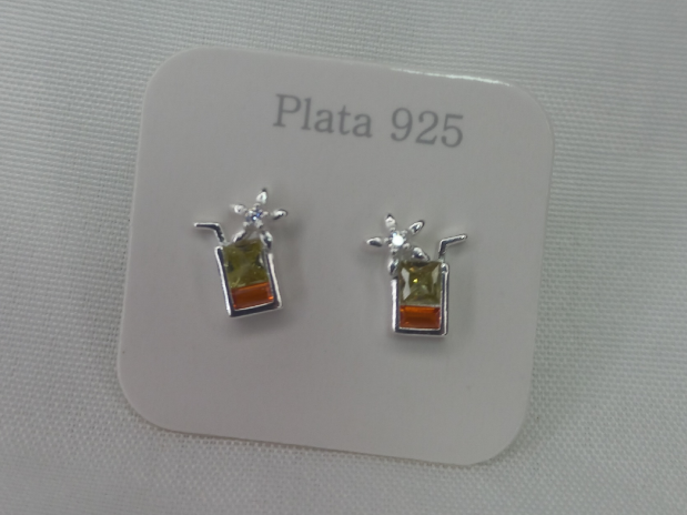 APC19 Compartir Aros pasantes plata italiana 925. Diseño muy original en forma de trago con sorbete. Base compuesta por cúbics baguette color amarillo whisky y naranja. Cierre mariposa$0 Observaciones 0 / 150