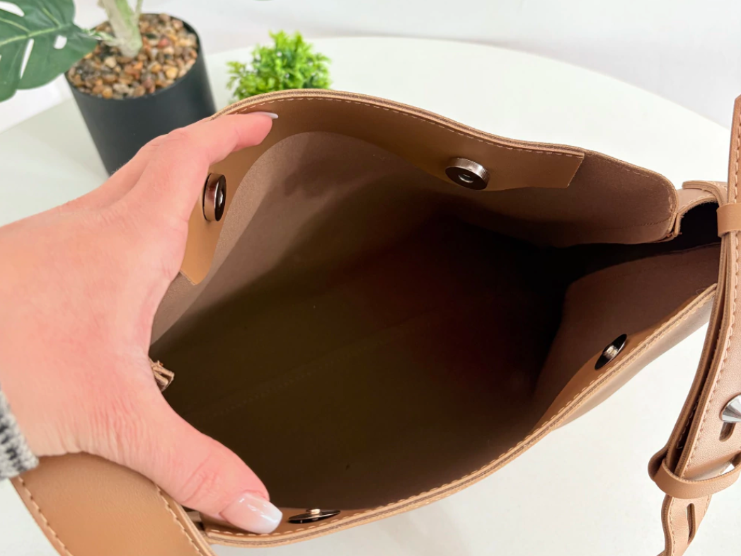 MEDIDAS: 33X30X13 MEDIDAS NECESER:24X18 Bag elaborada en ecocuero de primera calidad. Con correa regulable. No está forrada, porque la calidad premium de sus materiales así lo permite El sistema de cierre es a través de broches imantados. Posee un neceser grande con cierre