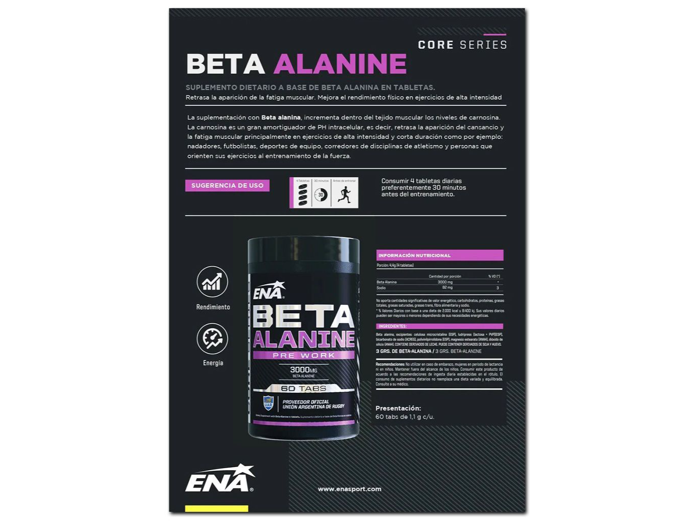 Una ingesta de Beta Alanine te provee de 3 grs de pura BETA ALANINA, para que logres entrenar más duro y más fuerte de lo que nunca pensaste. La suplementación con Beta Alanina aumenta la concentración de carnosina en los músculos. Beta Alanine te llevará al próximo nivel. Para aquellos que siempre tienen una frontera que cruzar, un límite que superar, un meta que demoler y más para lograr.